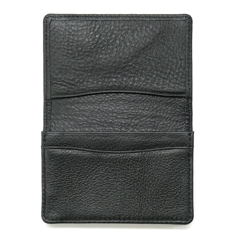 しぼの入った柔らかい黒革に、さりげなくも存在感があるアンティーク調メタルのダヤンロゴが光るクールなコレクション。内側には往年のアルカイックイラストをコラージュした総柄生地を使い、ちらりと見せるおしゃれが楽しめます。通しマチ付きで名刺がたっぷり入る名刺入れです。もらった名刺を一時的に入れておくポケットも付いていて便利です。