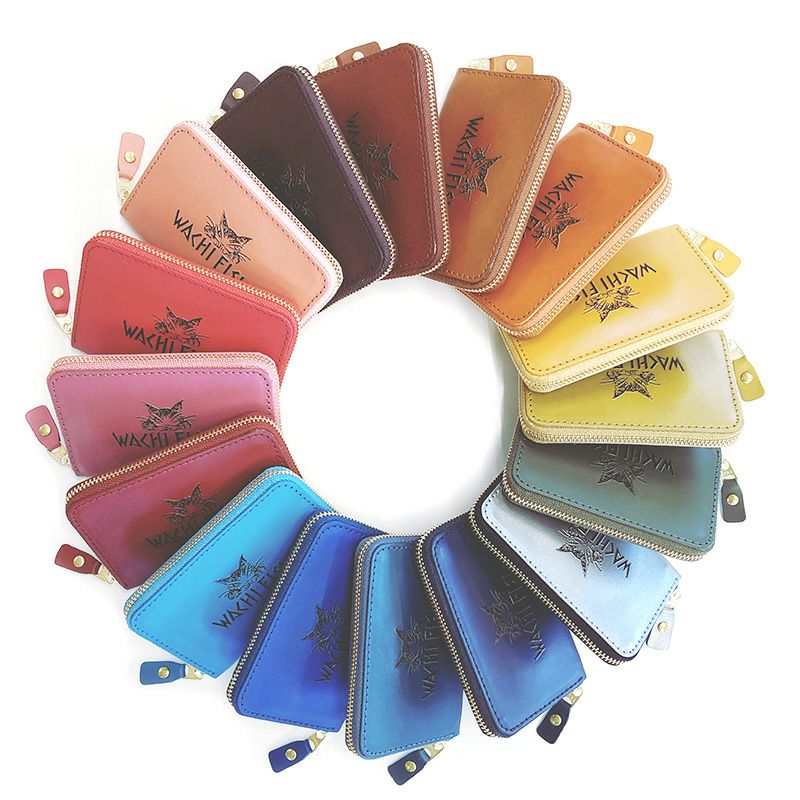 定番のカード小銭入れが、わちふぃーるどオリジナルカラー16色のラインナップで登場。エンボスのダヤンロゴを手染めで黒く染めた、わちふぃーるどの伝統デザインです。ポケットに入るサイズ感の小銭入れは、お札も三つ折りにすれば入るので一式をコンパクトに持ち歩きたい時にも便利です。