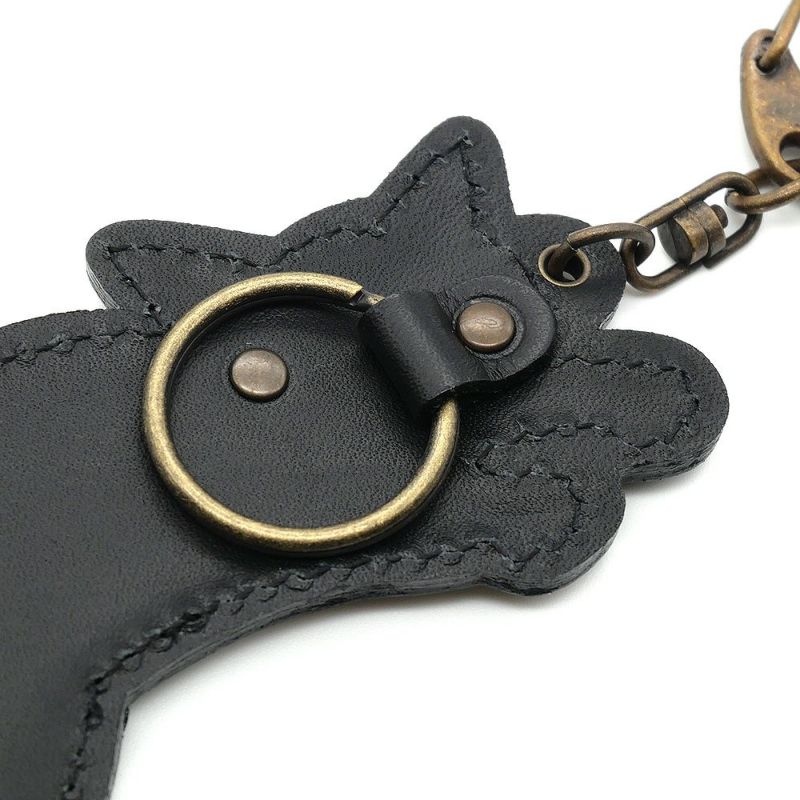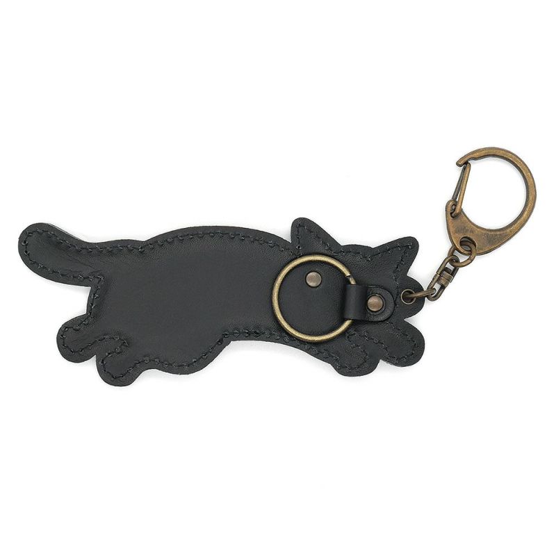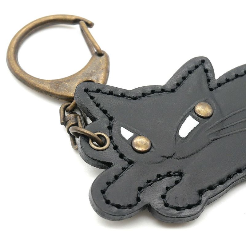 エンボス加工と瞳に見立てたカシメ、白目の着彩で、影猫チップの生き生きとした姿を牛革で表現したキーホルダーです。革を貼りあわせ、しっかりとした存在感。探しやすくて、持ちやすい。そんな絶妙なサイズ感。革工房が長年作り続けている、わちふぃーるどの定番アイテムです。ちなみに影猫チップとは、ダヤンの影。ダヤンと同じく、好奇心旺盛な性格をしています。