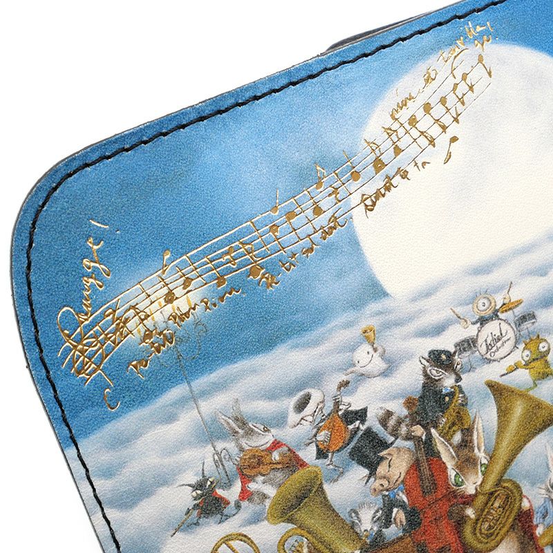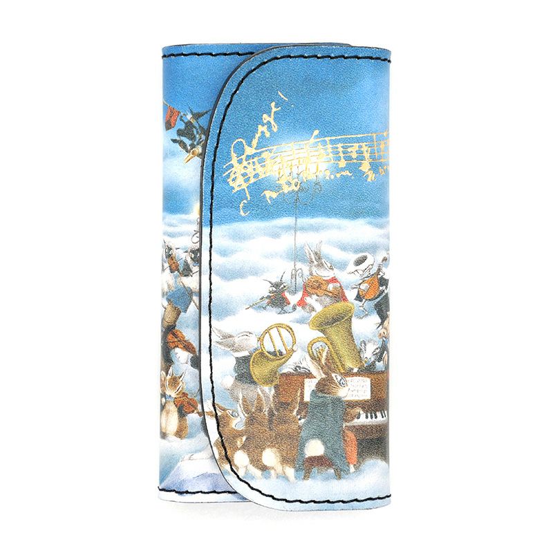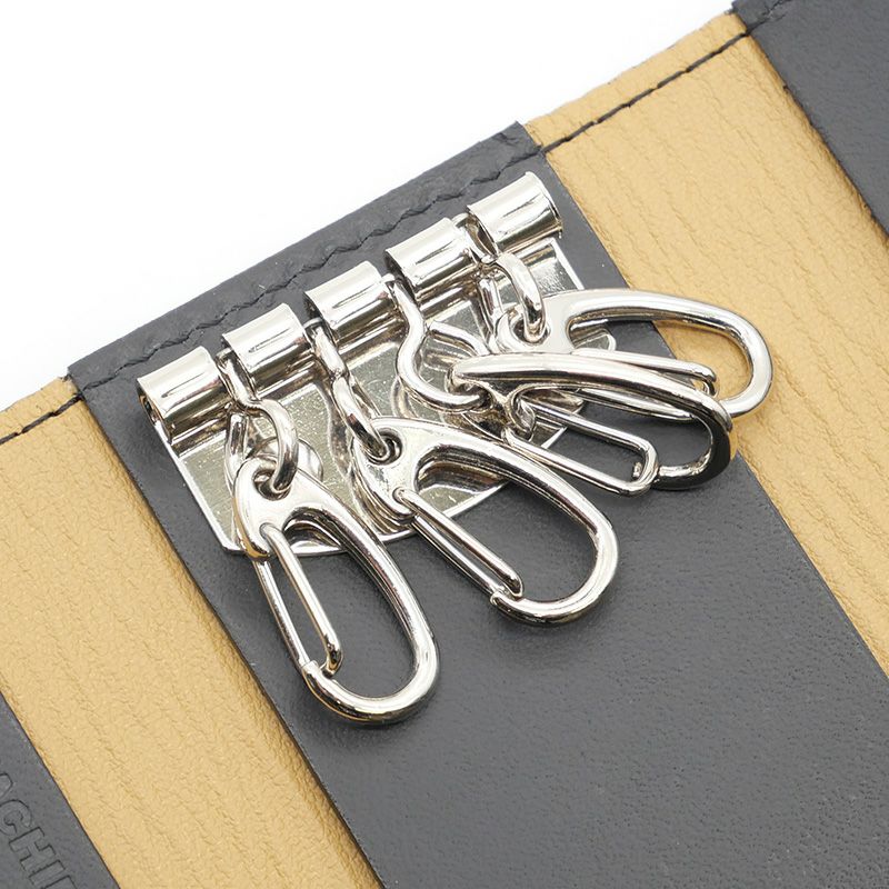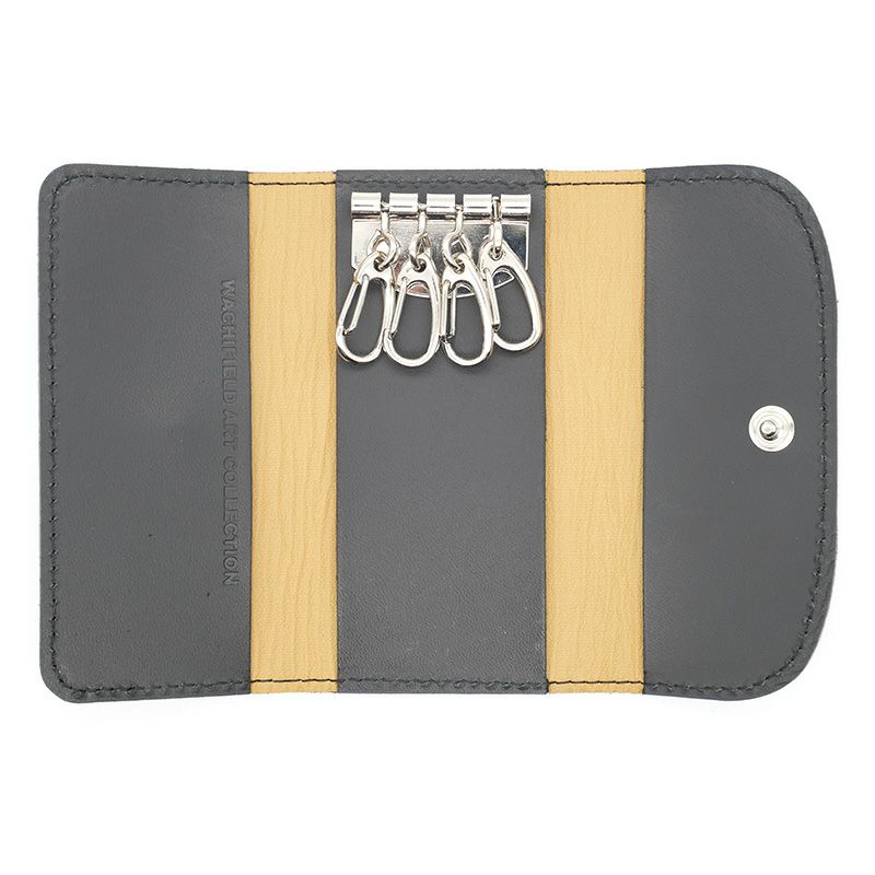 ワンポイントに箔押しを入れた、アートを楽しむキーケース。手の中に納まるスリムなフォルムです。鍵を取り付ける金具は、フック式です。