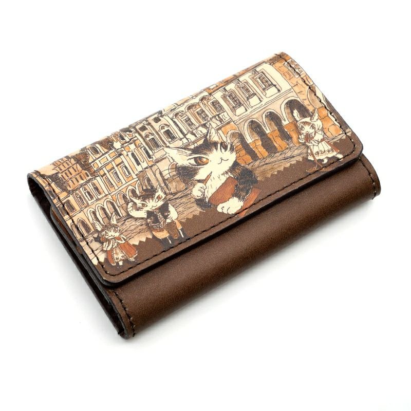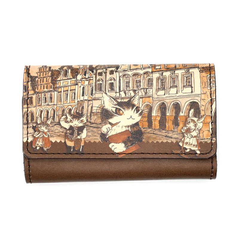 本体から外して使えるキーリングが便利なキーケース。4連金具は取り付けが簡単なフックタイプです。チェコラージュシリーズは、作家池田あきこがチェコを旅した際に描いたスケッチの数々を散りばめた、旅情溢れる素敵なデザインです。