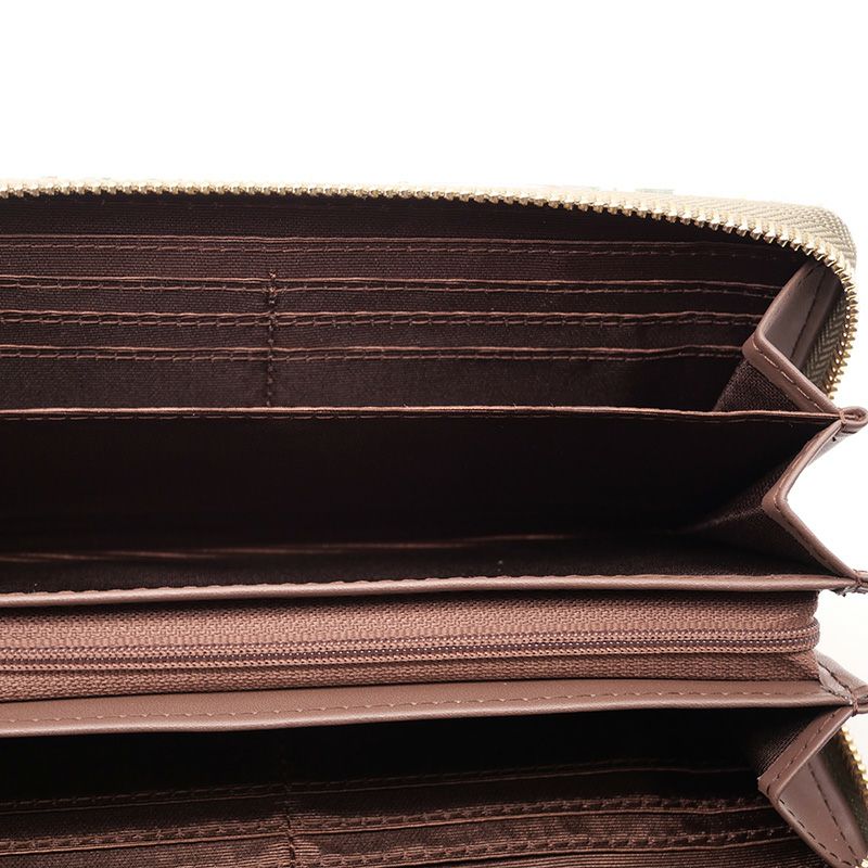 ラウンドファスナーを開けると十分なカード収納と、ファスナー付きの小銭入れ。合皮素材なので、毎日気軽に使えます。