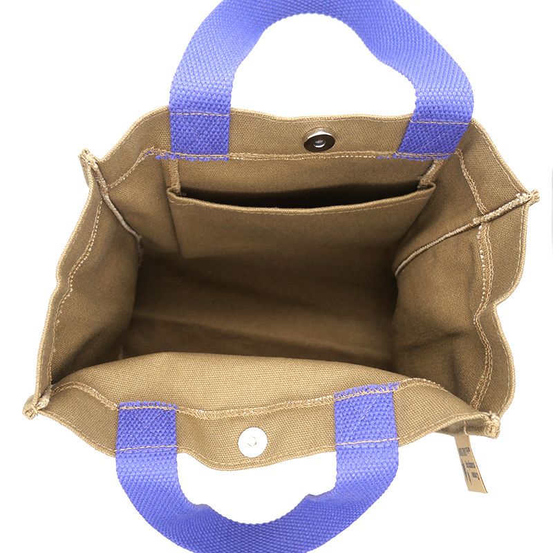持ち手の切り替えカラーがポイントの帆布素材ミニバッグです。入口にはマグホック付き。ちょっとそこまでのおでかけやサブバッグ、ランチバッグにおすすめです。
