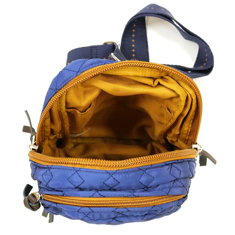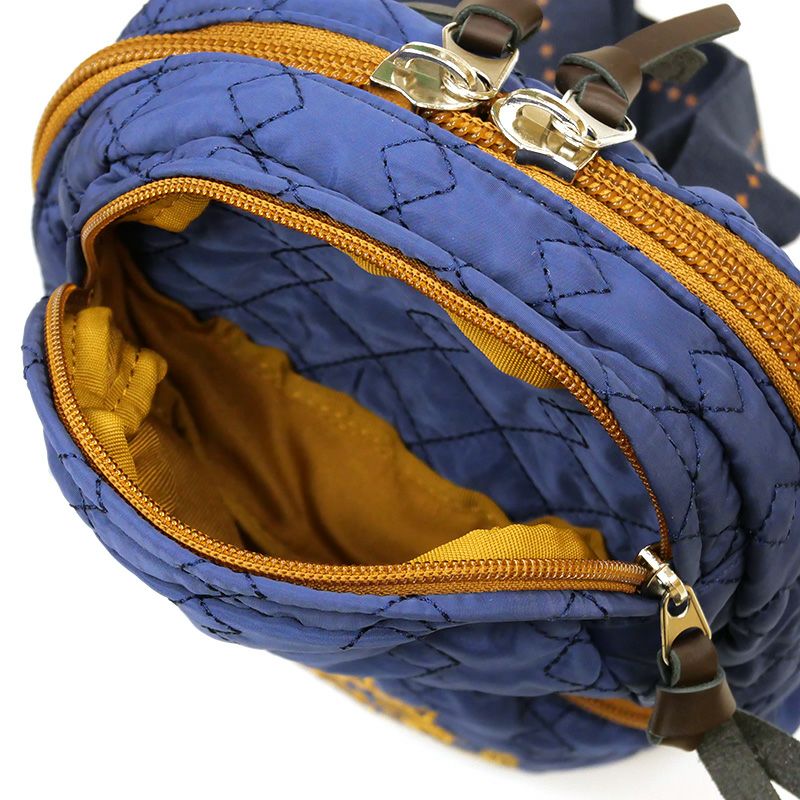 明るいコンビネーションカラーがまぶしいメヒコイメージのシリーズです。長財布やスマホ、500mlペットボトルの収納にちょうどいい、コンパクトなワンショルダーです。正面にはマチ付きのファスナーポケットが2つあり、見た目以上に小物を収納できます。ショルダー紐を短めにして体にフィットさせれば、散策などアクティブシーンにもぴったりです。