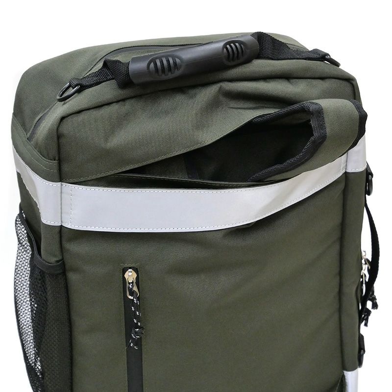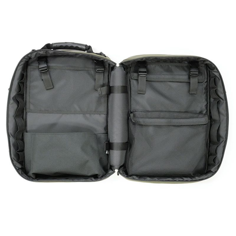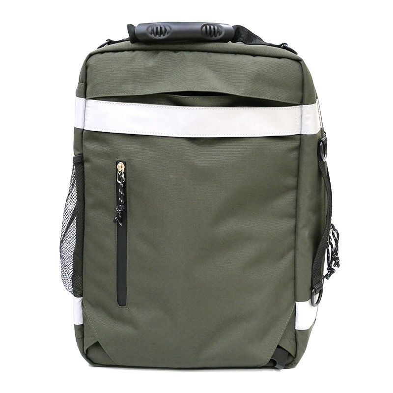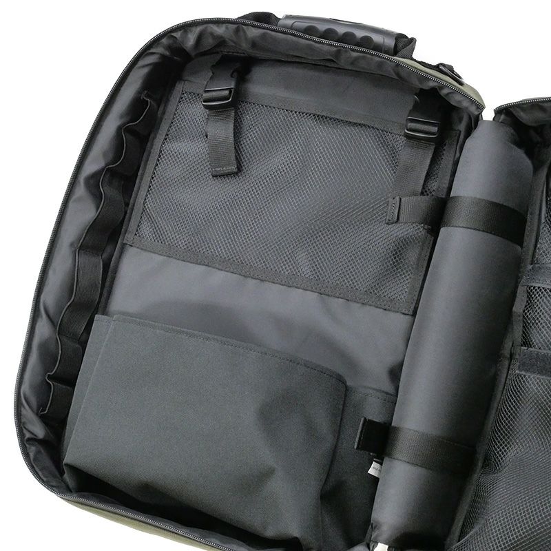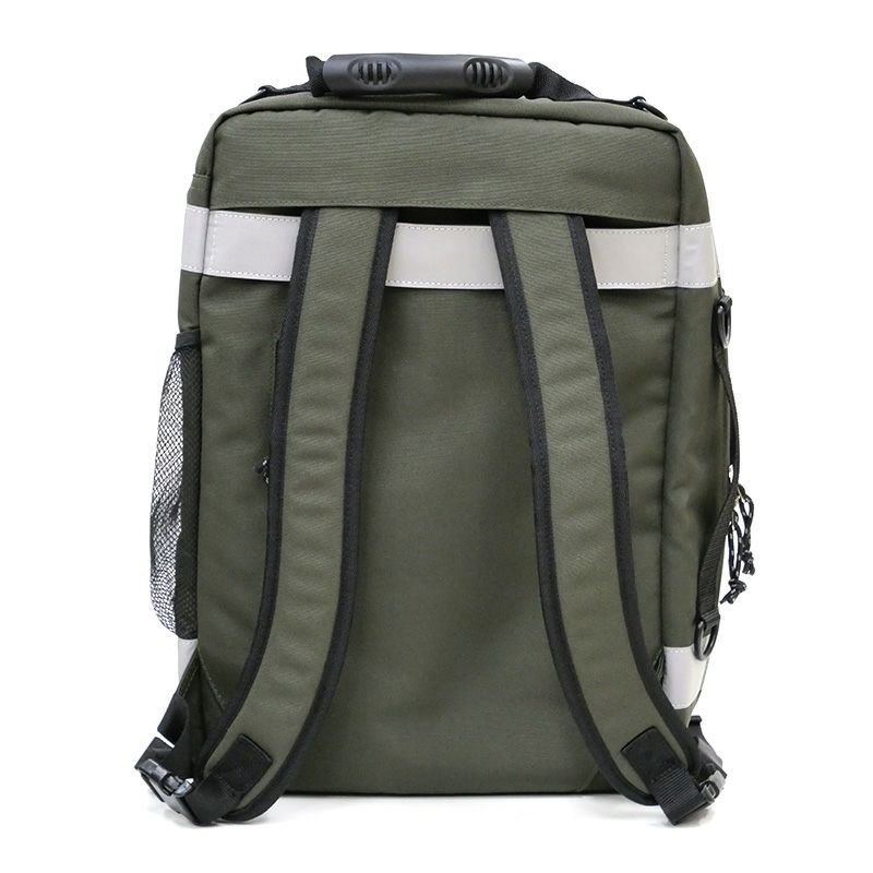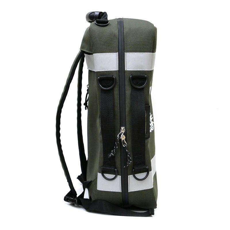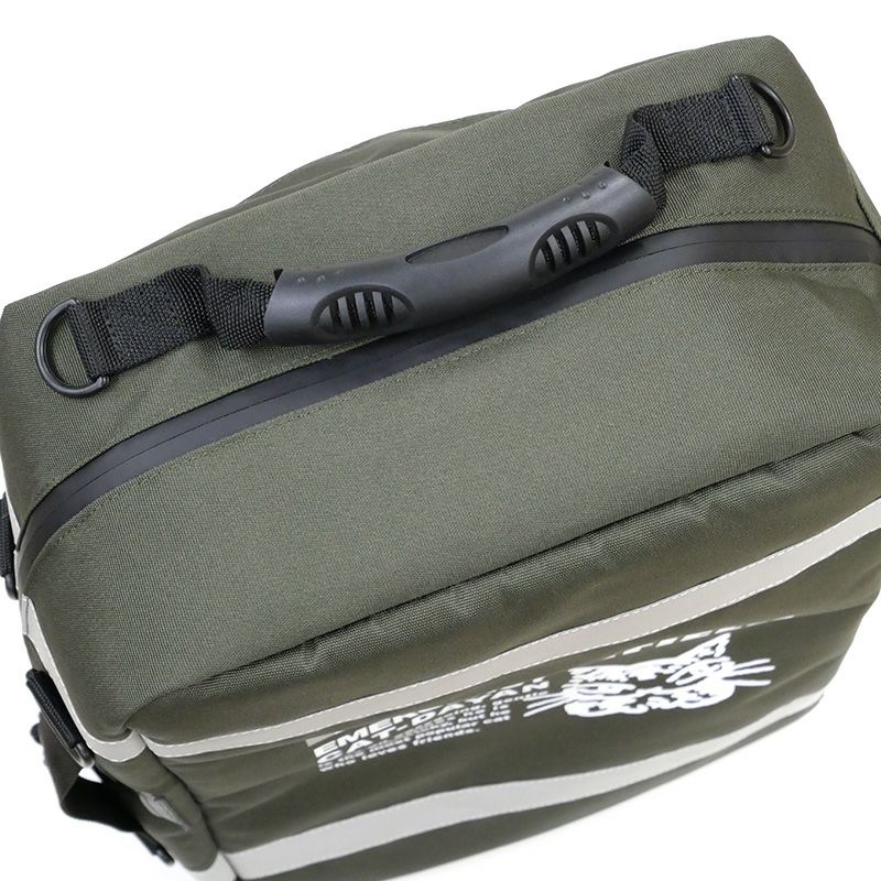 緊急時の備えに!常備しやすい・運び出しやすいエマージェンシーリュックが登場です。常備時にはトランクのように置け、移動時にはリュックスタイルで携行できます。手で持って持ち運ぶためのサイドハンドルも付いており、さらにキャリーバッグへの取り付けも可能です。強撥水生地+防水ファスナー仕様で、プリントや引手には一部にリフレクター素材を使っています。世界の救急分野で長く支持されているメディカルバッグをベースに、 物資の判別と管理に優れた分類収納も強化しました。