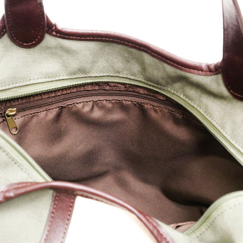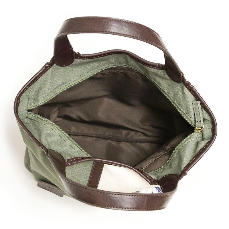 オフ白×カーキのコンビカラーが春らしいプレーントートバッグです。ぴったり閉まる天ファスナーが安心のA4収納サイズ。使い勝手が良い大きさで、オンオフ使える上品な仕上がりです。