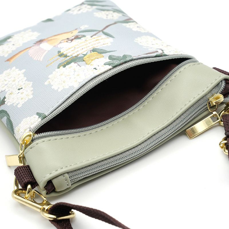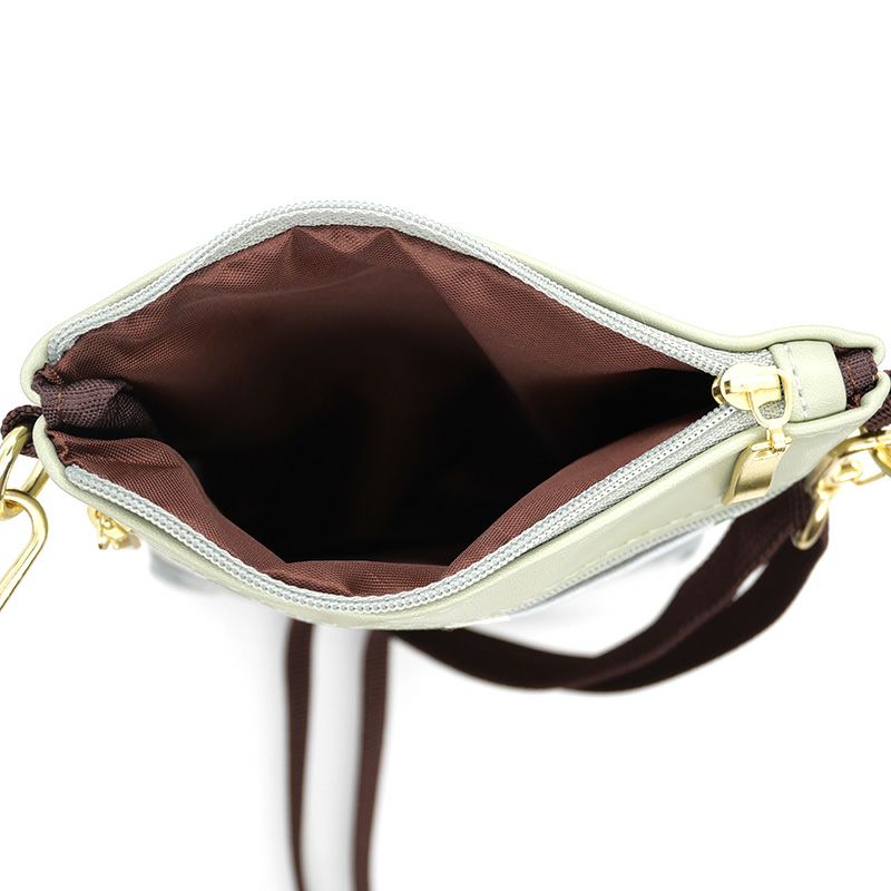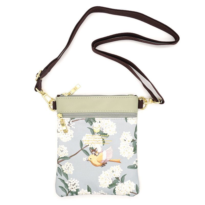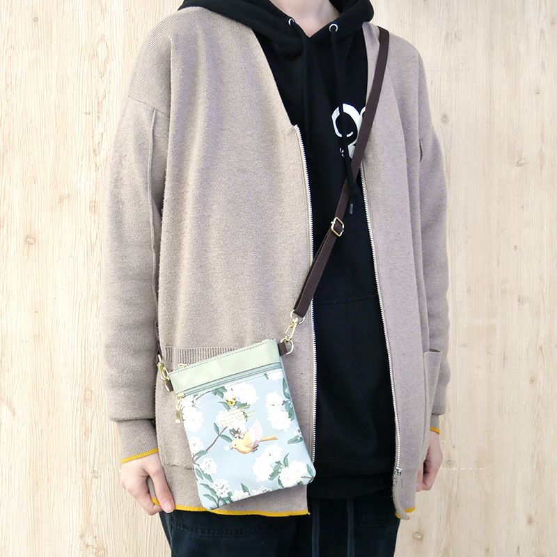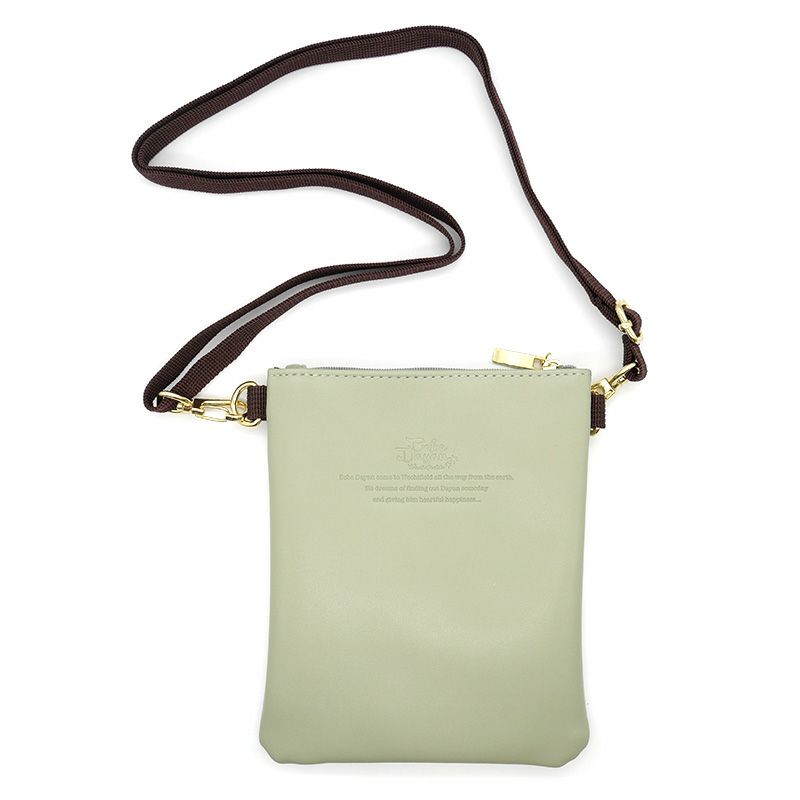 コンパクトなフラットタイプで、スマホなど小物の持ち歩きに便利。合皮素材なので、毎日気軽に使えます。