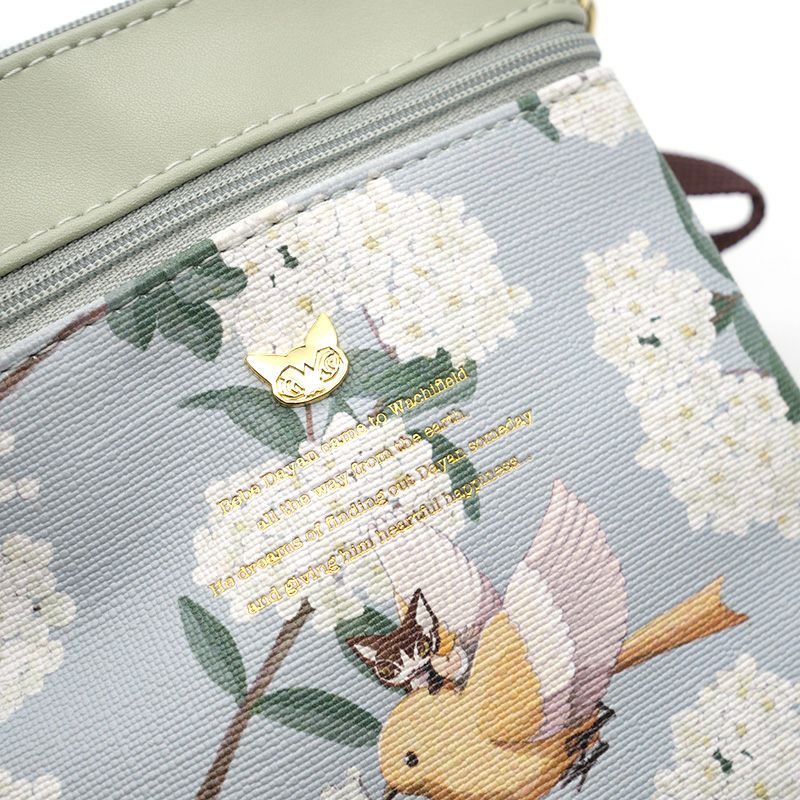 こころが宿ったダヤンそっくりのぬいぐるみ、 ベベダヤンのフェイクレザーのポシェットです。コデマリとカナリアをイメージした春らしいデザイン。