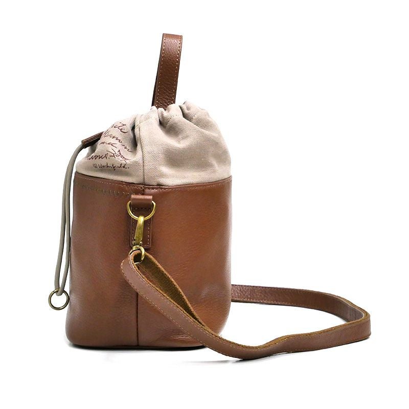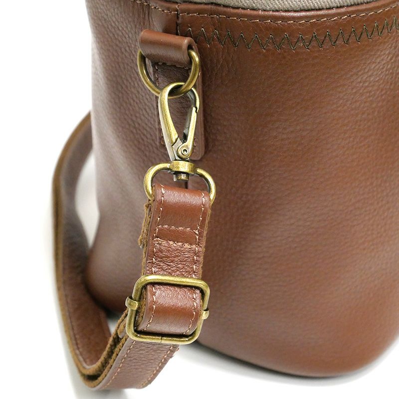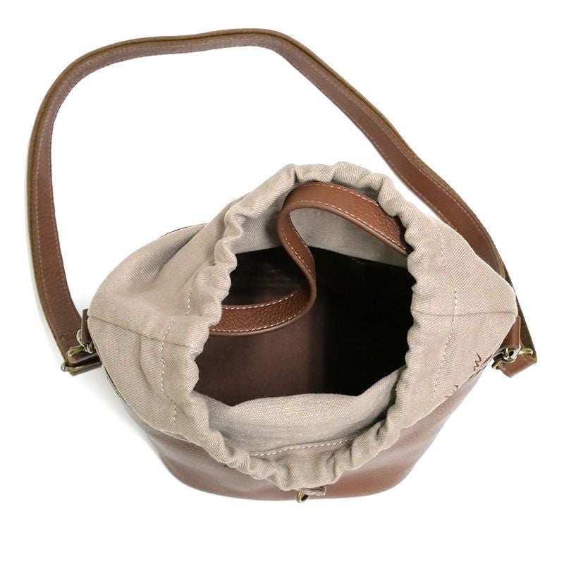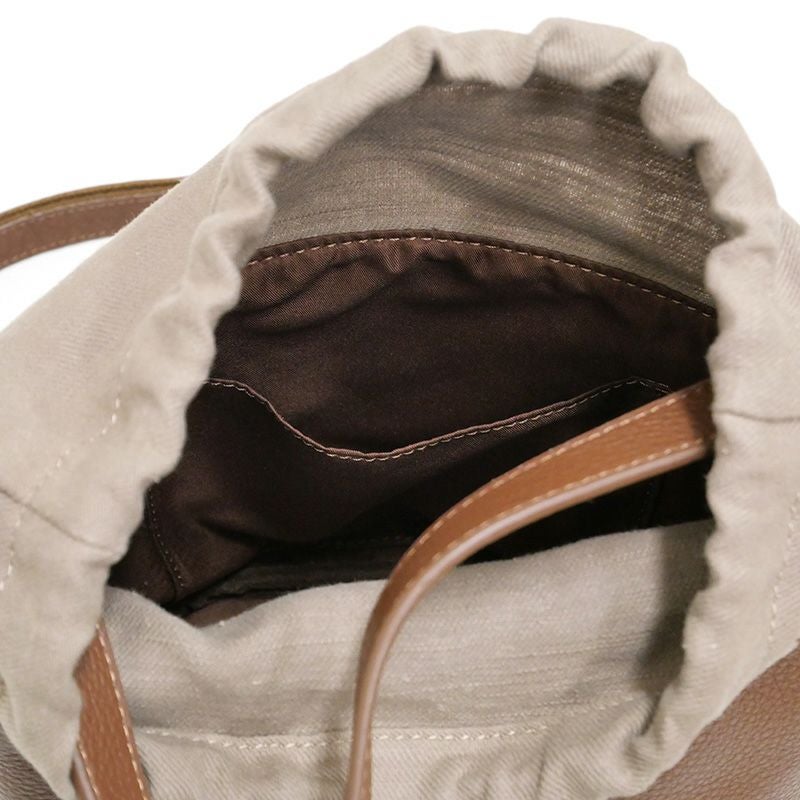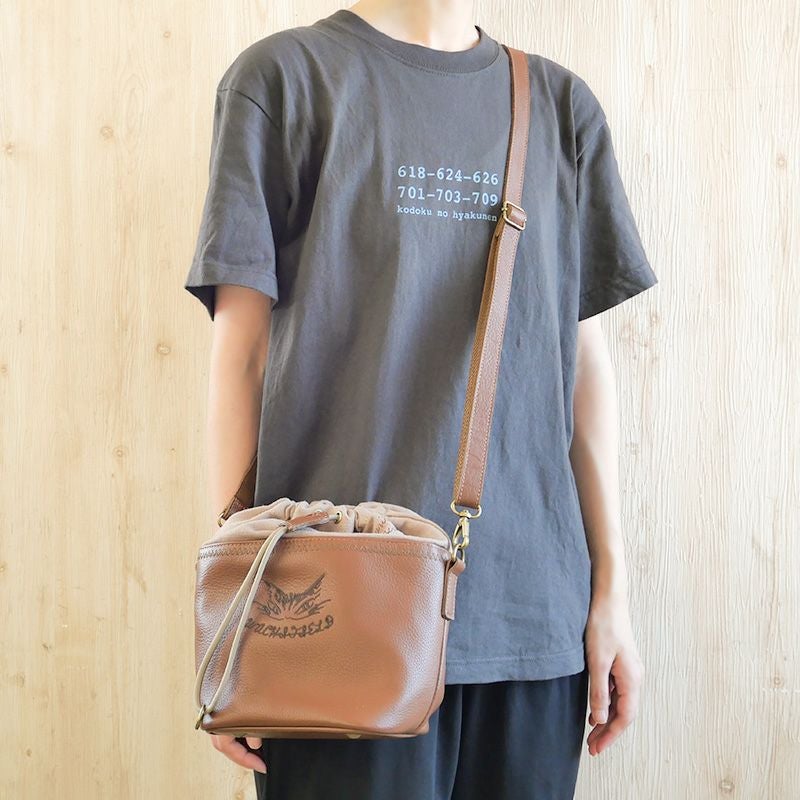 レザーコンビ巾着ミニショルダー 茶