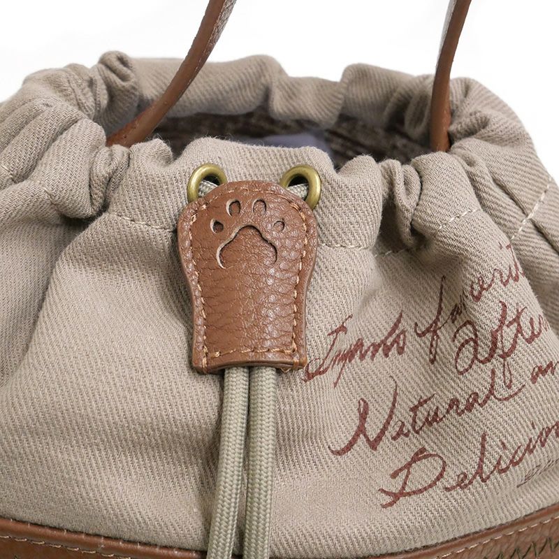 やわらかな革と生地を合わせた使いやすいデザイン。ハンドルスタイルとショルダースタイルで楽しめる巾着ポシェットです。ショルダー紐は外せます。お財布やスマホなどの必需品を持ち歩くのにちょうどいいフォルムがかわいい、おしゃれバッグです。