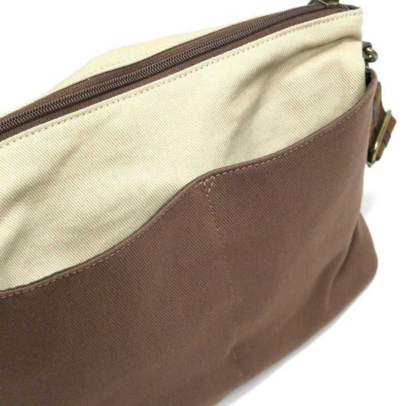 帆布とスプリットレザーのコンビ生地を使った、軽さと上品さを兼ね備えたバッグです。正面と背面にゆったり広めのポケットを付け、すぐ取り出したいものを外ポケットに一通り収められるようにした機能的デザイン。持ち手は取り外しでき、ハンドルバッグとしてもショルダーバッグとしても使えます。カジュアルになりすぎず、デイリーに使いやすいサイズ感です。(B5ノートがちょうど入るサイズです。)