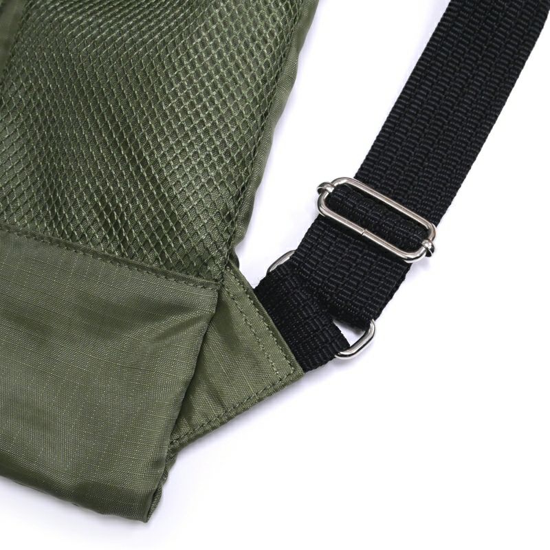太目のショルダーでナップザックとは思えない快適な背負い心地。巾着口もきゅっと絞れるので安心です。豊富なポケットを備え、カジュアルシーンにおすすめしたいバッグです。