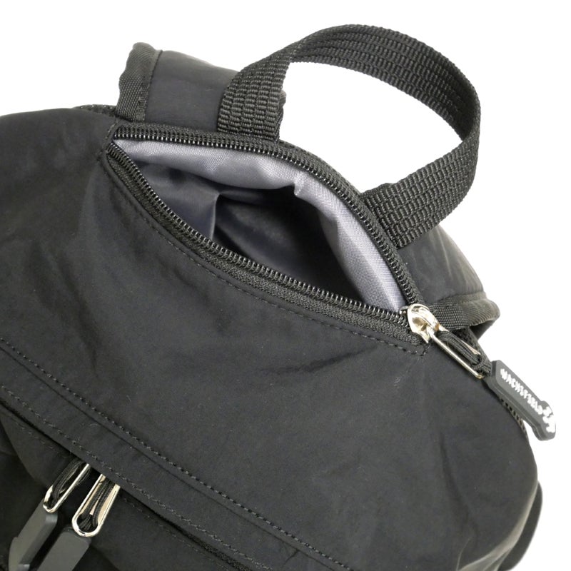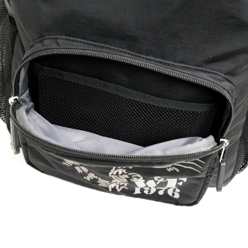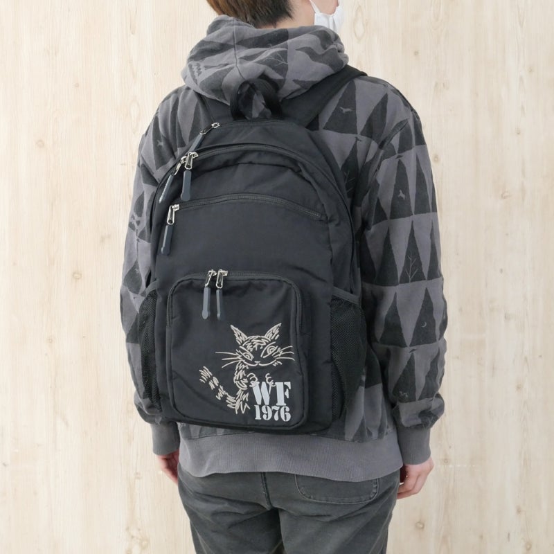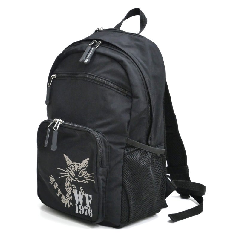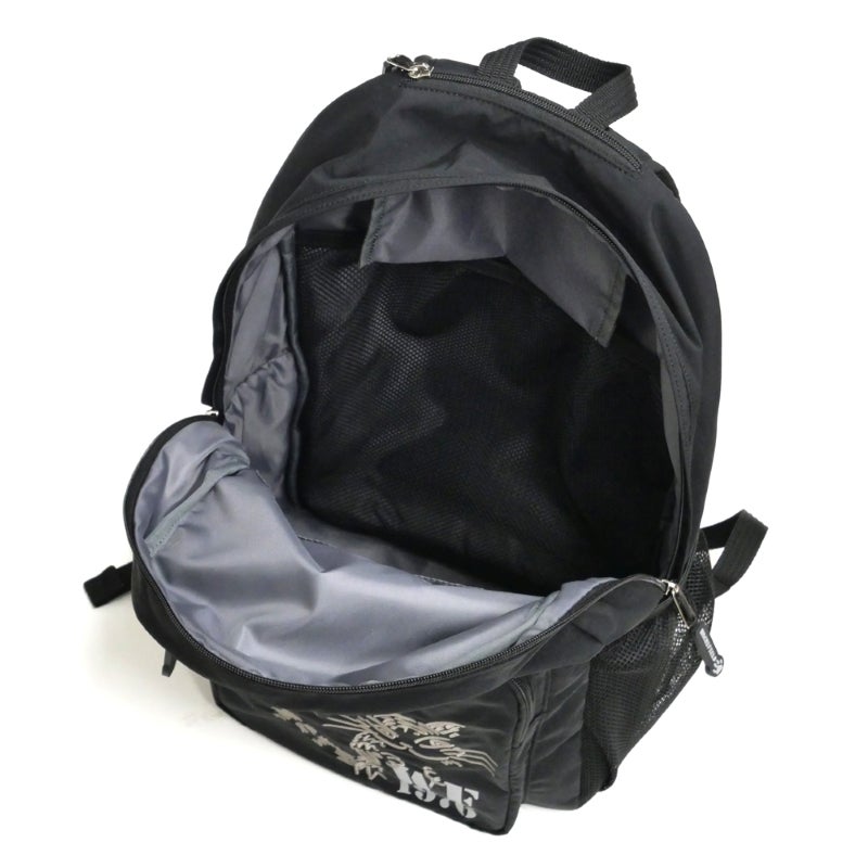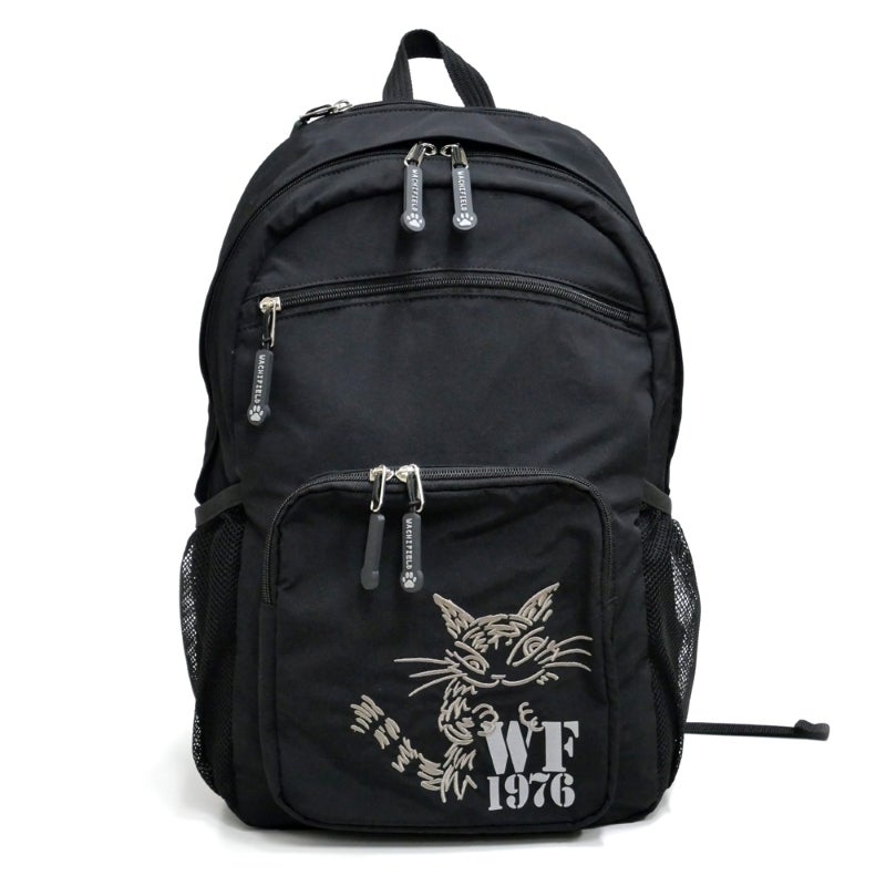 軽くて扱いやすい、大好評の撥水バッグシリーズ。リフレクト仕様のロゴとダヤンの刺繍がアクセントです。旅行やお出かけ、スポーツシーンにも頼れるたっぷり容量のリュック。撥水生地だから急な雨の日も安心。チェストベルト付きで肩ひもがずれにくく、長時間でも快適に使えます。サイドのメッシュポケットは斜め切込みで出し入れもスムーズ。さらにリクエストにお応えして、天面にミニポケットもプラスしました。背面はメッシュ仕様で蒸れにくく、毎日使いたくなる機能派リュックです。