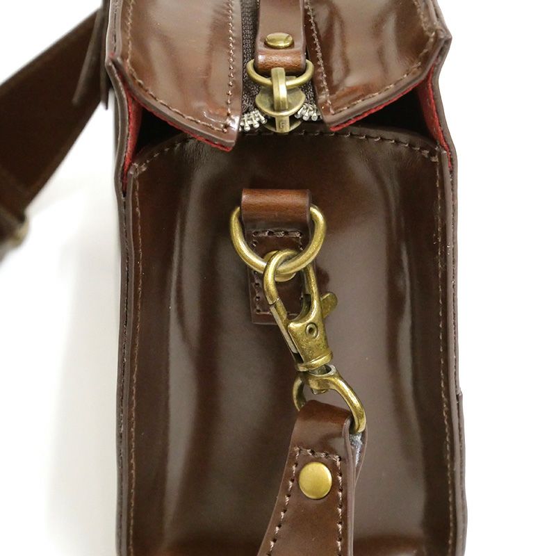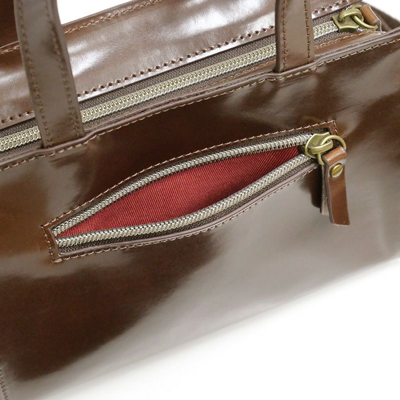 ※スプリットレザーは、厚みのある本革の裏側部分(床革)の表面に樹脂をコーティングして強度を高めた素材です。こちらの商品は艶のあるエナメル調のコーティングを施し、華やかな印象に仕上げています。