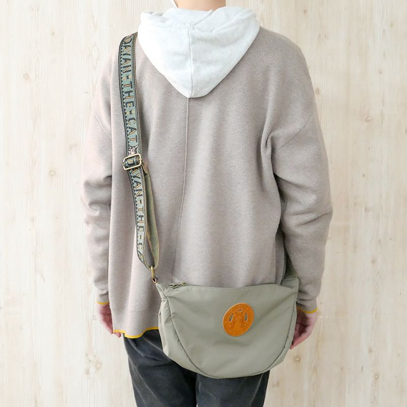 お財布、スマホ、ペットボトルといった身の回りのものがほどよく収まるコンパクトなショルダーバッグです。ダヤンのジャガードテープを使ったショルダー紐が少し目をひくアクセントになっていてかわいいです。