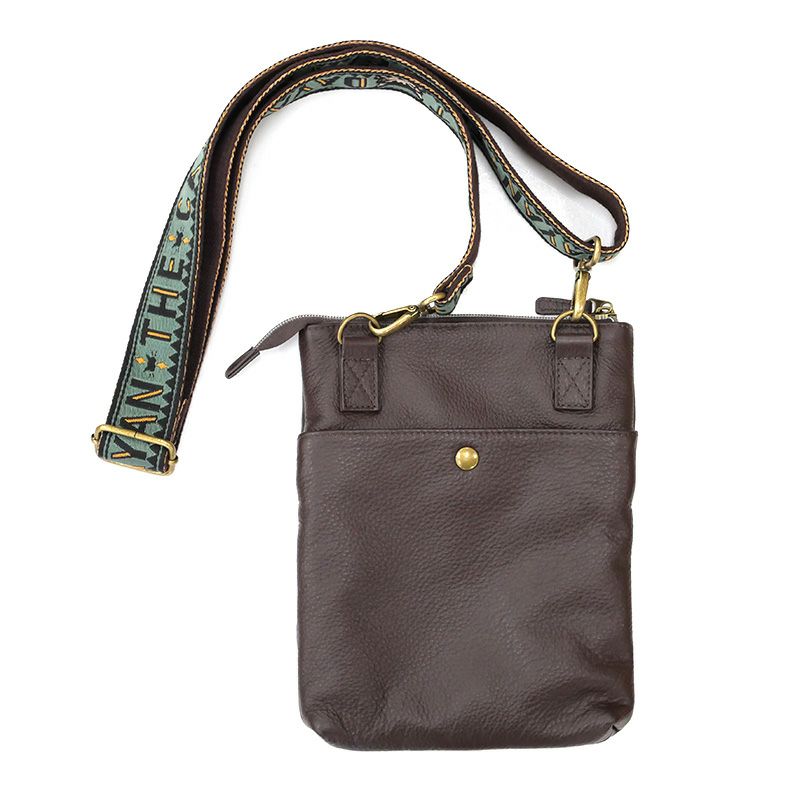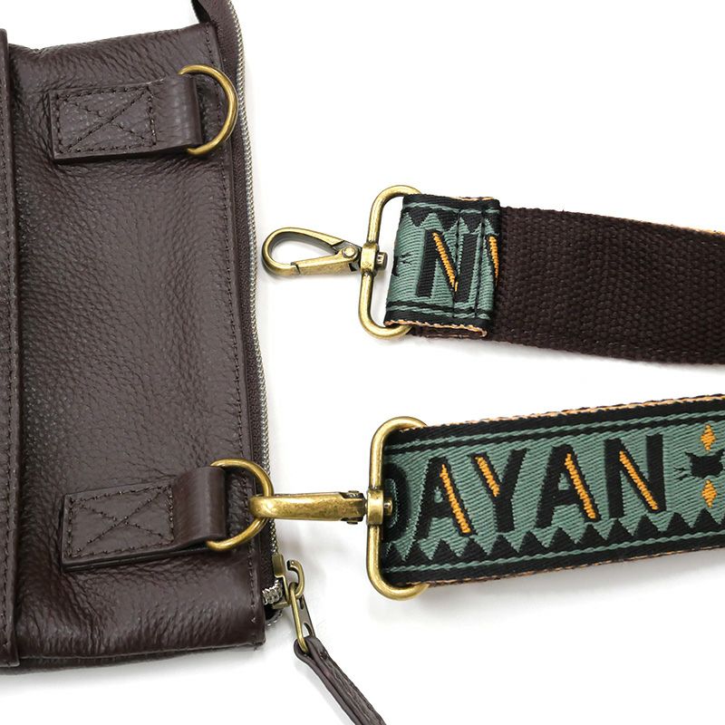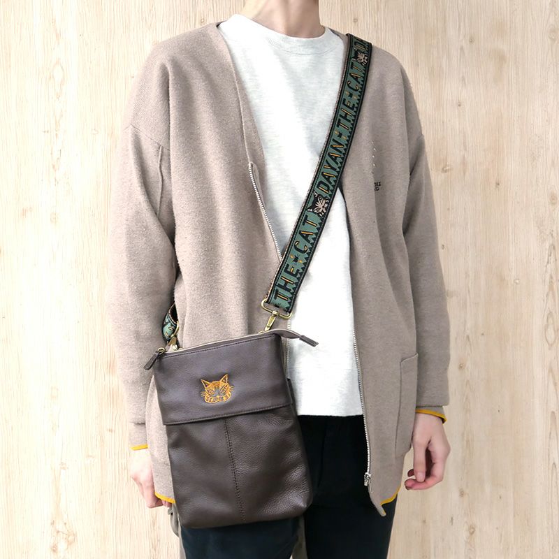 前ポケットにスマホがスムーズに入るレザーサコッシュ。ファスナー付きのメイン開閉はマチなしですが意外に容量があり、500mlのボトルも入ります。スッキリと平たいサコッシュ型なので、上からコートを羽織ってもかさばらず旅行先でもおススメ。ジャガードデザインが可愛い太目のショルダー紐は取り外し可能なので、ポーチとしても使えます。