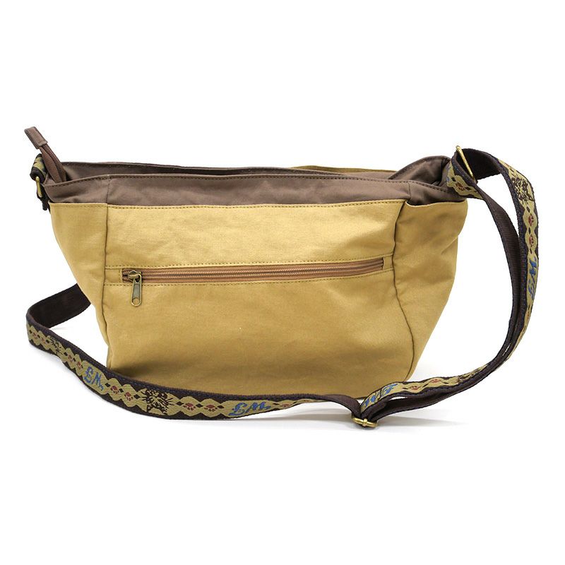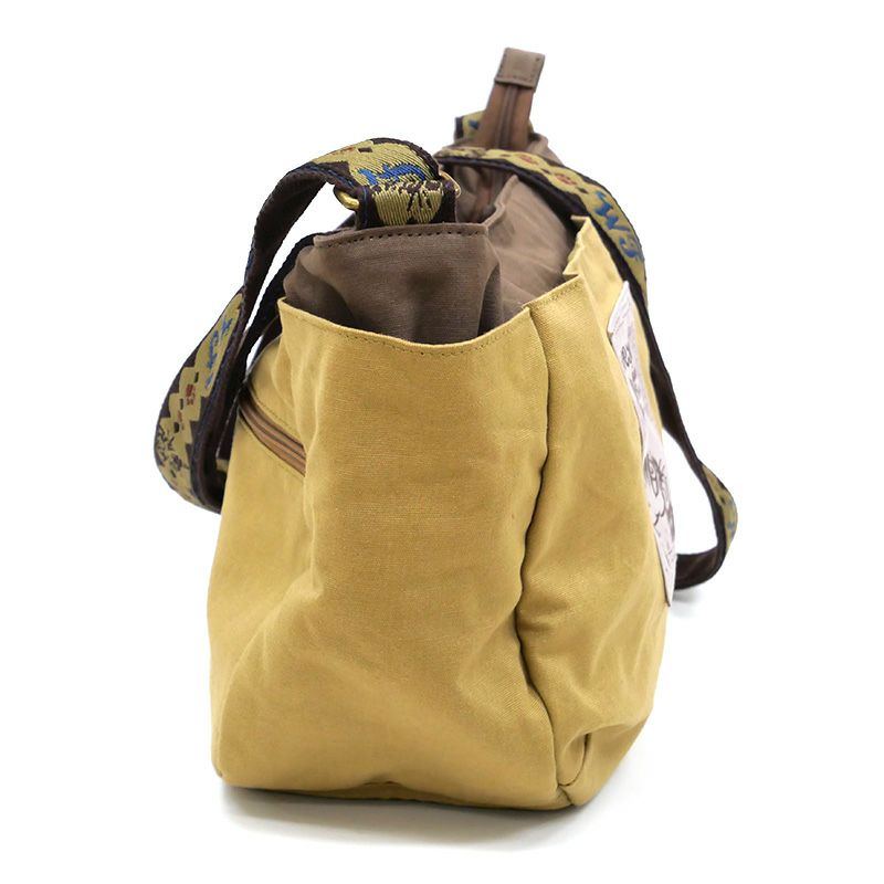 前、後、左右にもポケットが付いた小分け収納抜群のデイリーショルダーバッグです。ダヤン柄のジャガードテープをあしらったショルダー紐は、ファッションのポイントにもなって可愛い。軽さも嬉しい、毎日使いたくなるバッグです。