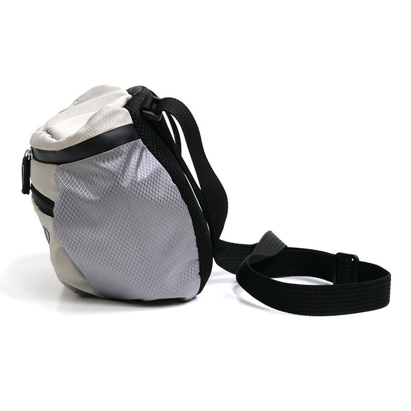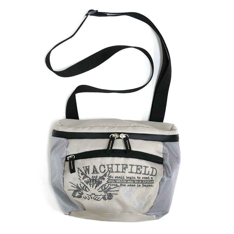 ちょっと変わったフォルムのコンパクトショルダーバッグ。メイン収納の入口は止水ファスナー仕様です。前ポケットの中にはベルトフックが付いており、鍵やパスケースなどを取り付けるのに便利です。背面の隠しポケットは、スマホ収納にぴったり。