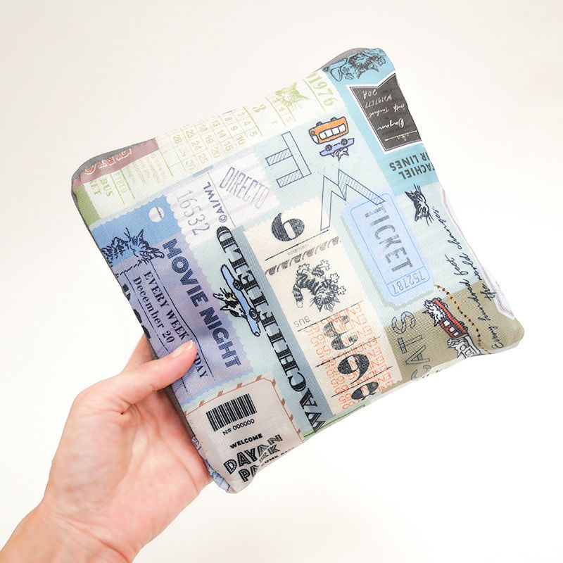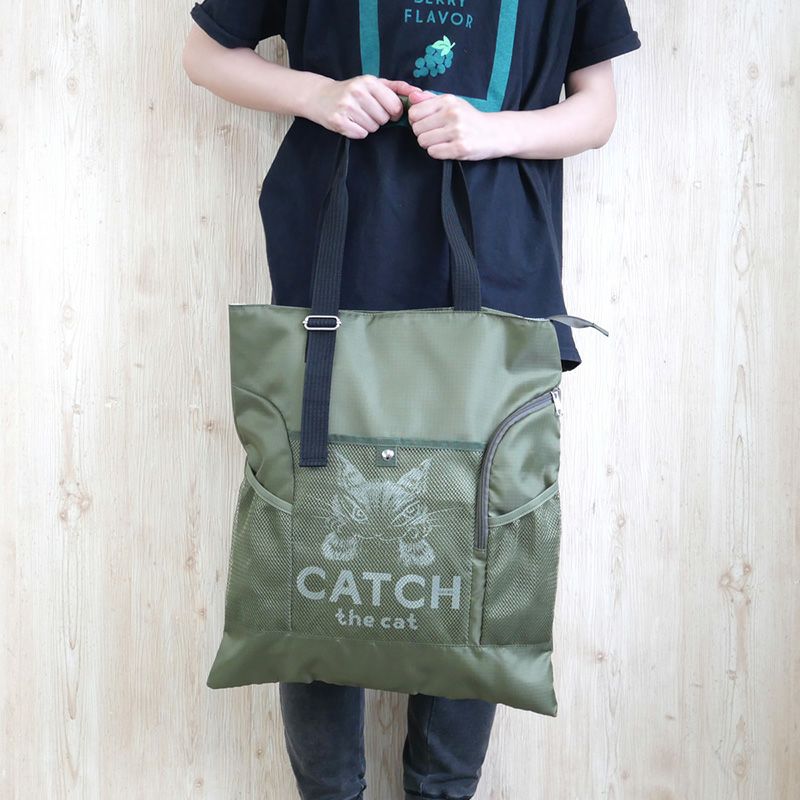 中綿が入った生地でぽてっとしたシルエットの手さげトートバッグ。ダヤンの目元に光るさりげないパール風飾りがポイントです。サブバッグにちょうどいいサイズです。