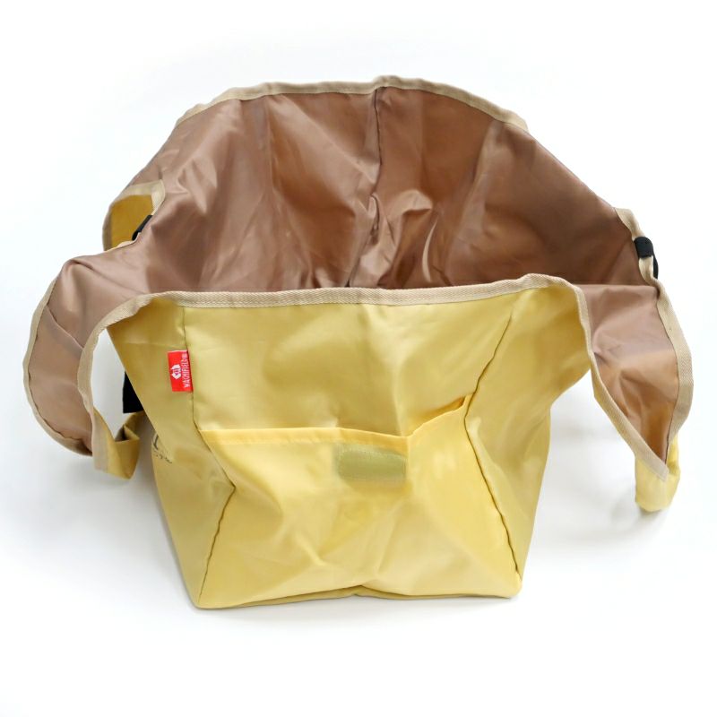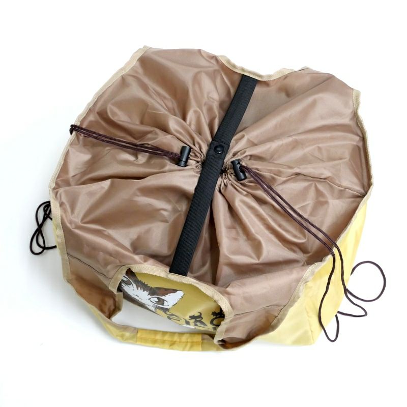 いっぱいのお買い物を、レジかごに掛けてそのまま収納!大容量のレジかごエコバッグです。入口は巾着付きで絞って閉じられるので安心です。