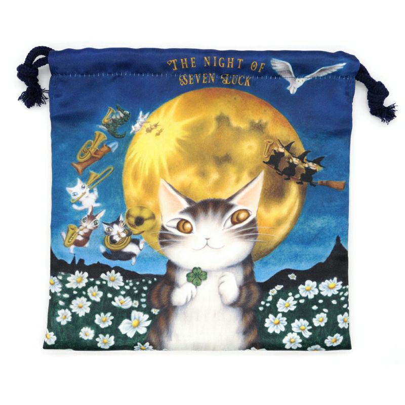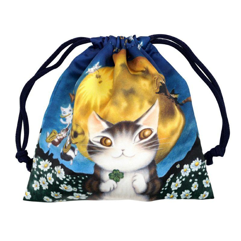 バッグの中で迷子になりやすい小物の仕分けに便利な巾着。イラストには、ツキが目いっぱい詰まっています!