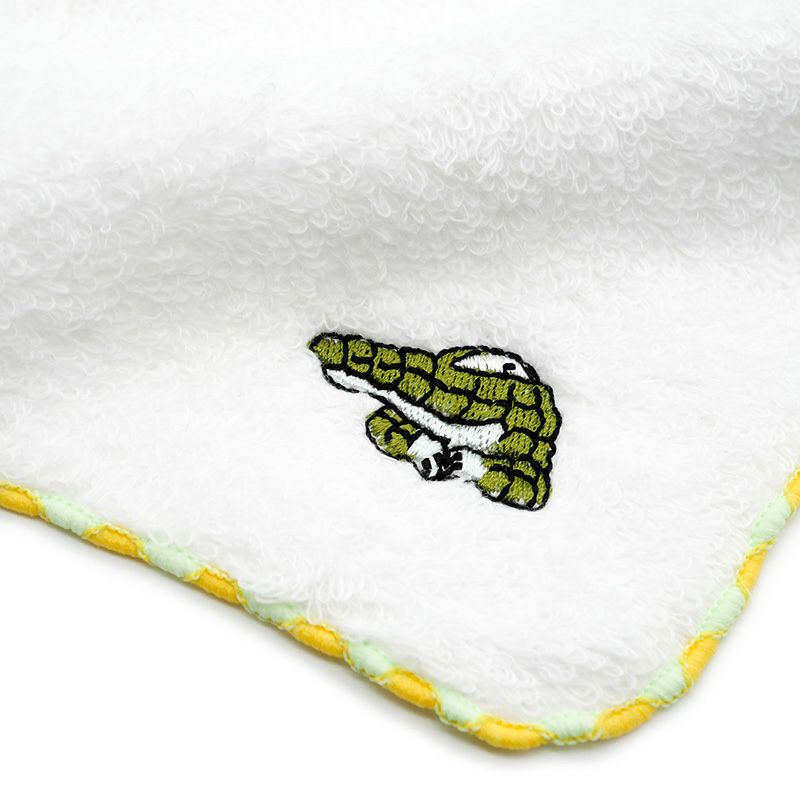 お気に入りの仲間と一緒にお出かけを!一本一本の糸が細く、撚りが少ないためふわふわ柔らかな手ざわりのタオルハンカチです。ポケットにもしまいやすいプチサイズ。
