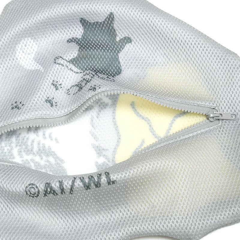 ダイカットデザインがかわいい、メッシュ生地の洗濯ネットです。Tシャツが2枚ほど入るサイズです。