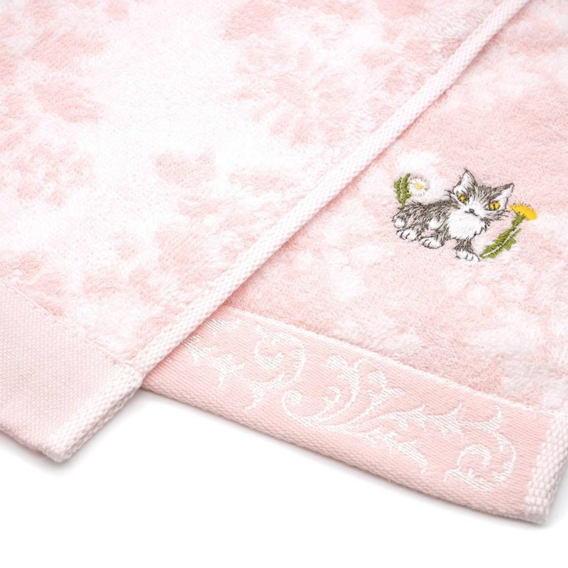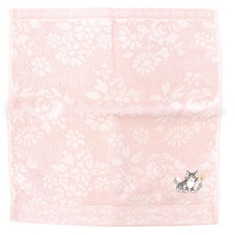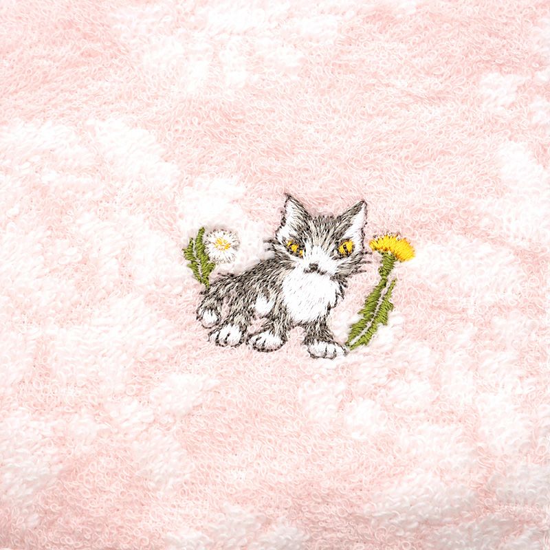 ダヤンのワンポイント刺繍を入れた、爽やかな色の花柄ウォッシュタオルです。使い心地の良い今治製です。