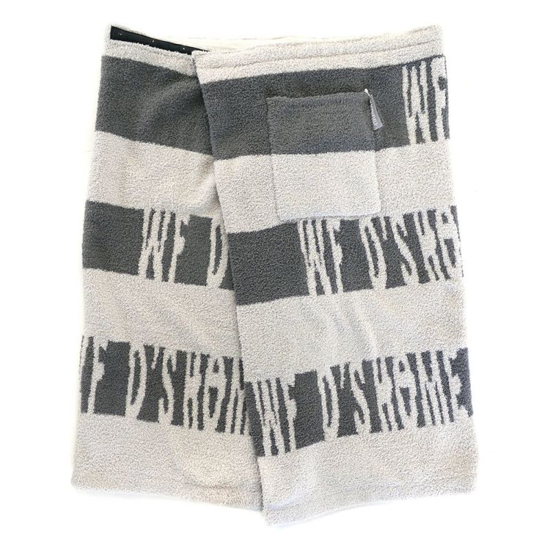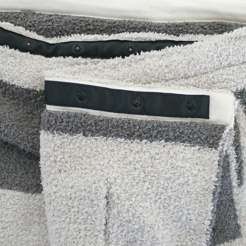 ふわふわ糸で編んだ大判ひざかけです。スナップボタンと絞り紐が付いていて、ひざかけの他に腰巻やポンチョ風の使い方もできる3WAY仕様です。
