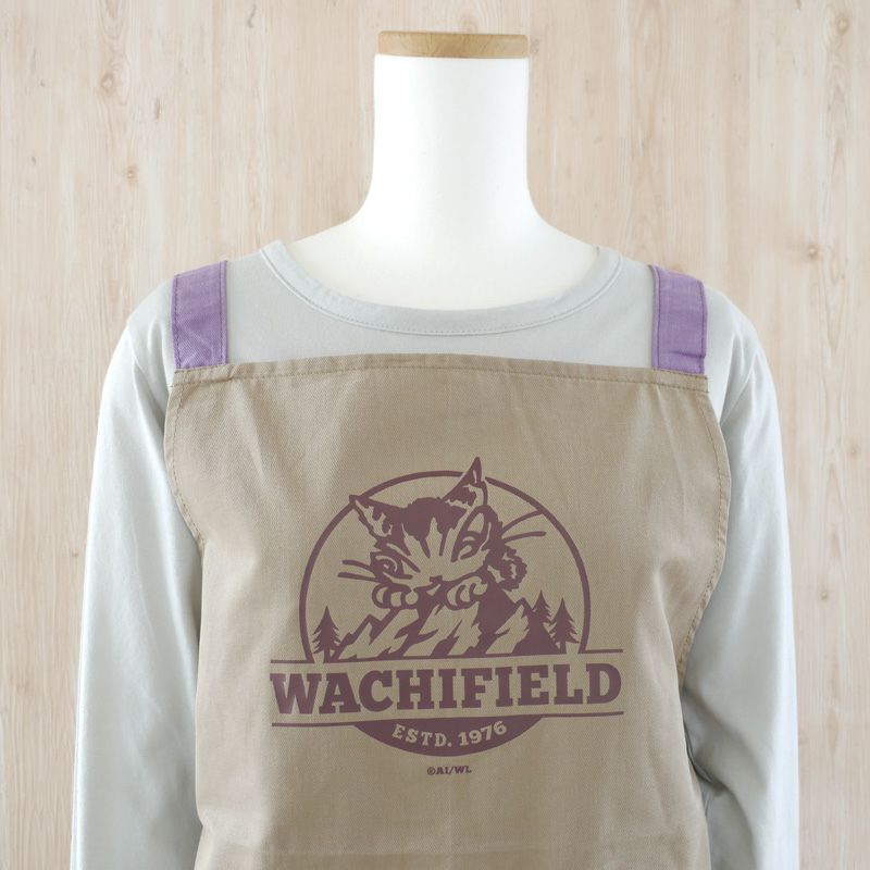 肩と腰紐が配色になっている、シンプルなH型エプロン。広めのポケットとスマホが入るくらいのやや狭めのポケットが付いています。