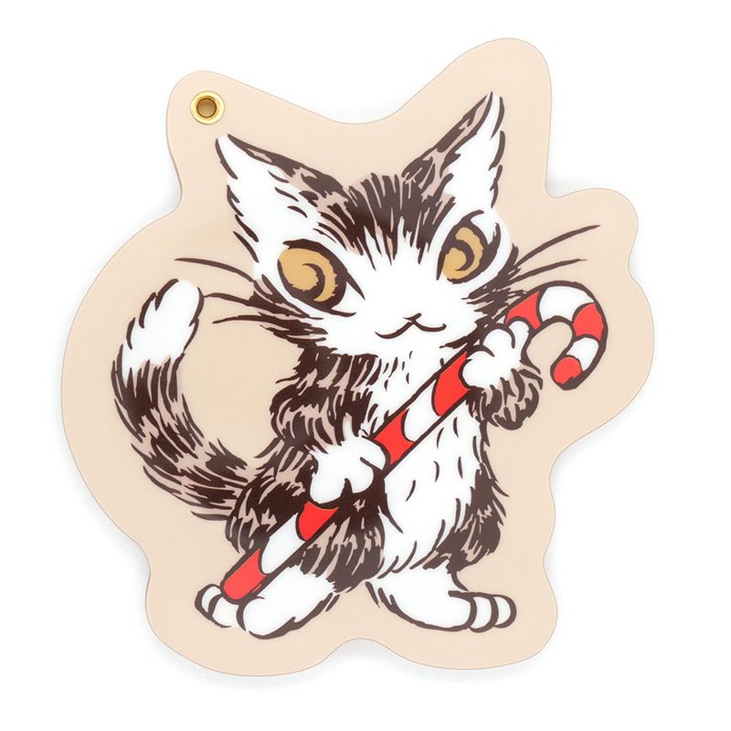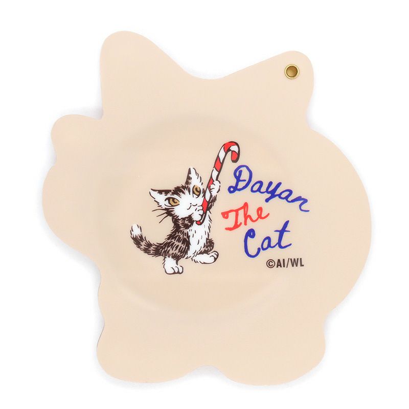 キャンディケインを持ったダヤンのダイカットミラー。スライドで開きます。中の鏡は直径5cmの丸型。持ち歩きに便利で、ちょこっとしたギフトにもおすすめです。