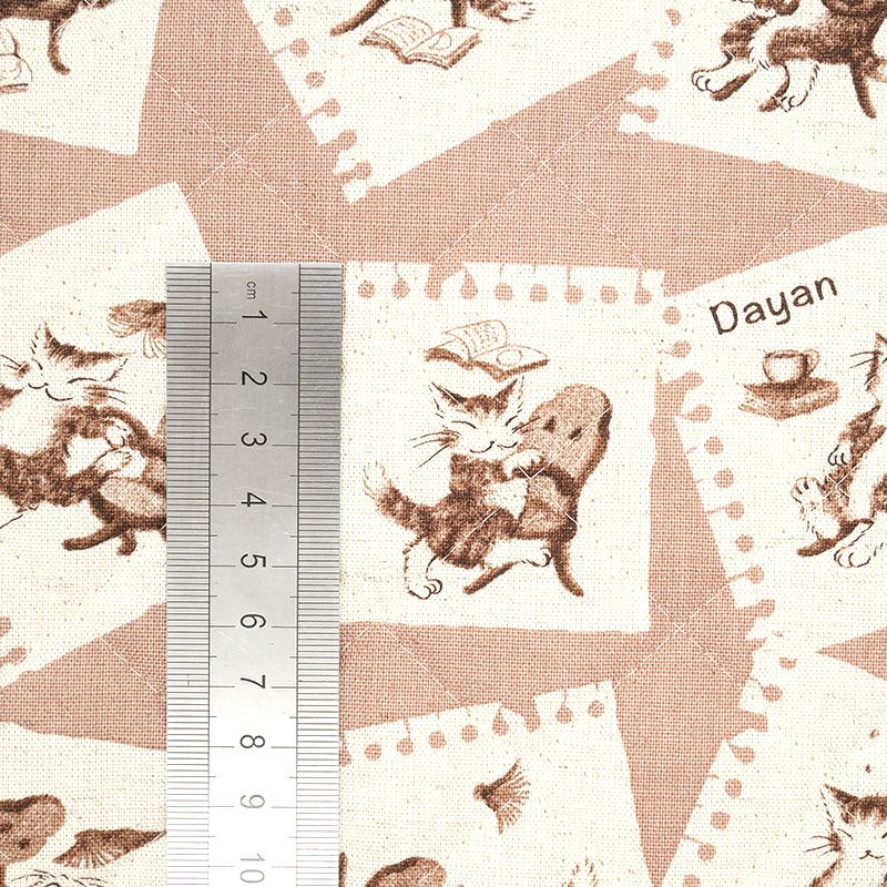 キルティングの総柄カットクロスです。椅子とダンスするダヤンを散りばめた楽しいデザイン。綿麻混でさらりとした生地感です。