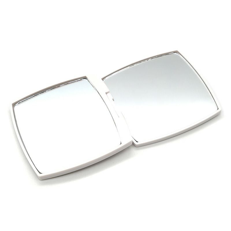 手のひらに収まる小さめミラー。鏡は片側が通常等倍で、もう片側は目もとのメイクをする際などに重宝する2倍の拡大ミラーになっています。