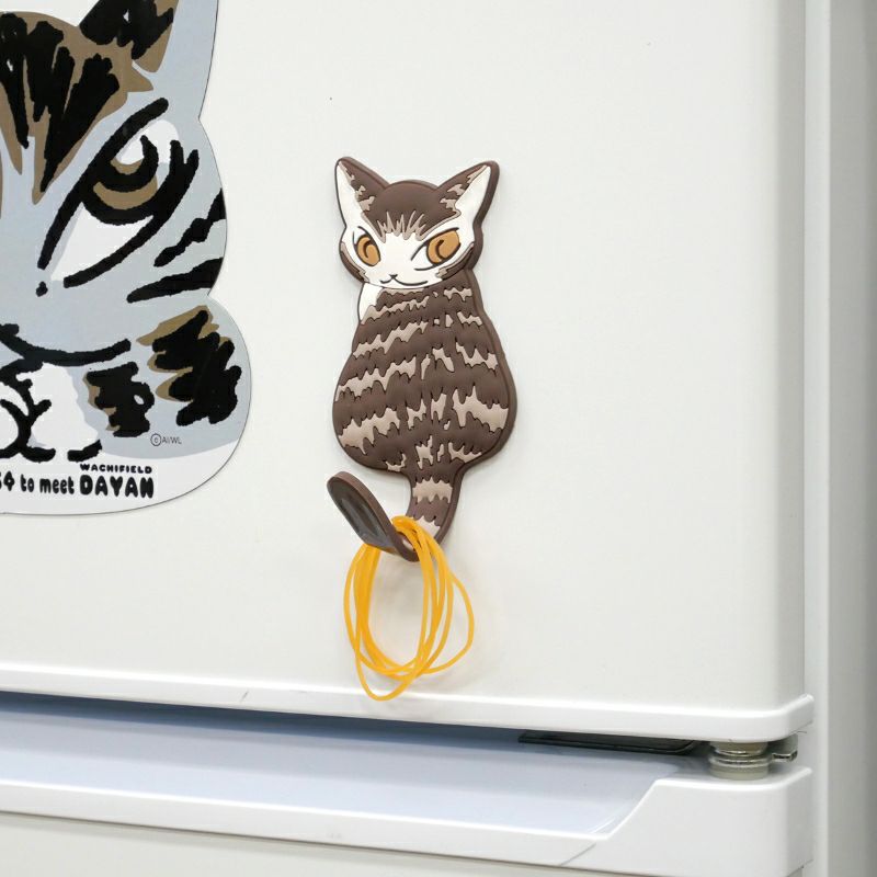 しっぽを曲げるとフックになるラバーマグネット。冷蔵庫や玄関扉など、磁石が付く素材にペタリと貼り付けて使います。尻尾に小物をかけたりマグネットでメモを留めたりと役立つアイテムです。