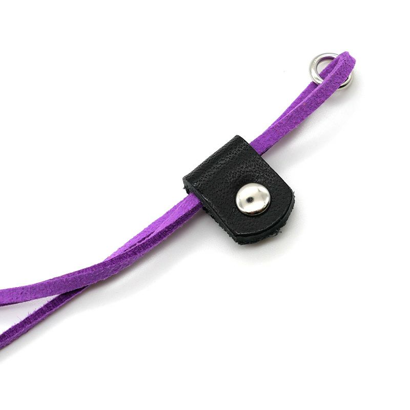 メガネにもマスクにも使えるホルダーです。チャームの取り付け位置を変更し、より自然にお使い頂けるようになりました。柔らかい合皮スエード紐を使用し、首あたりが優しい仕様になっています。