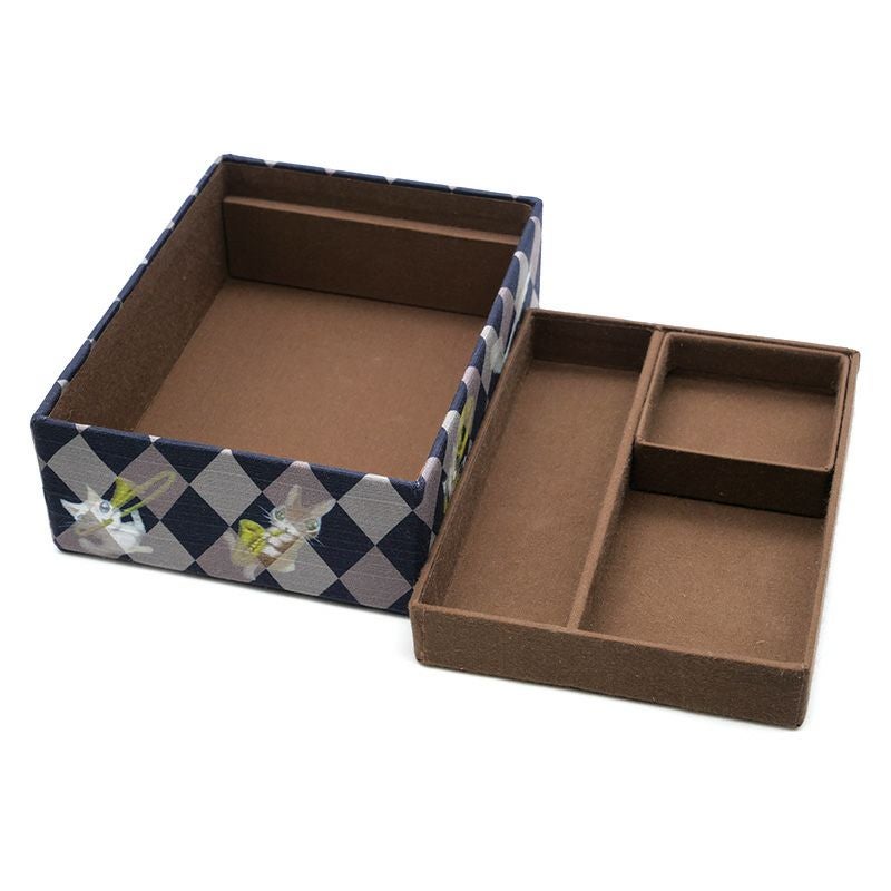 ソーイングボックスとしても便利な、2段タイプの文具箱です。文具やアクセサリーなど、お好きなものの収納箱にどうぞ。