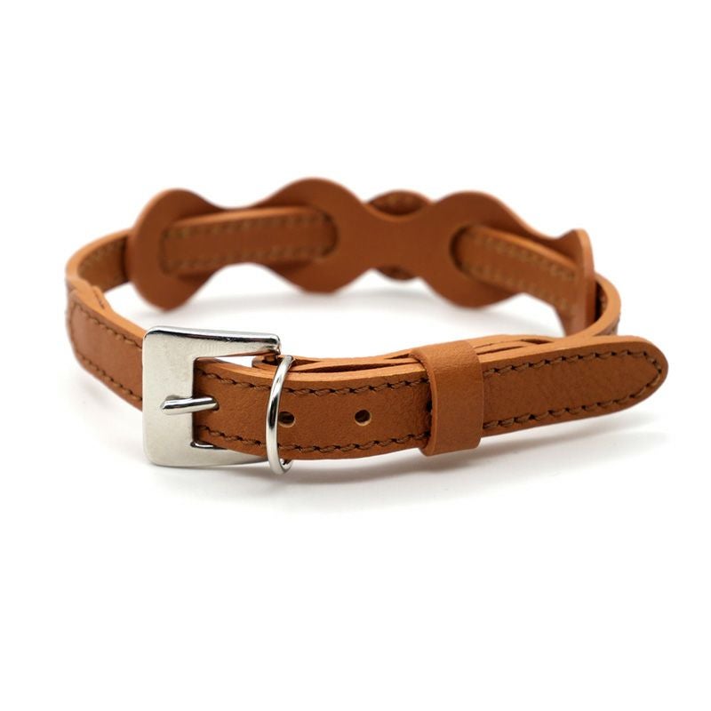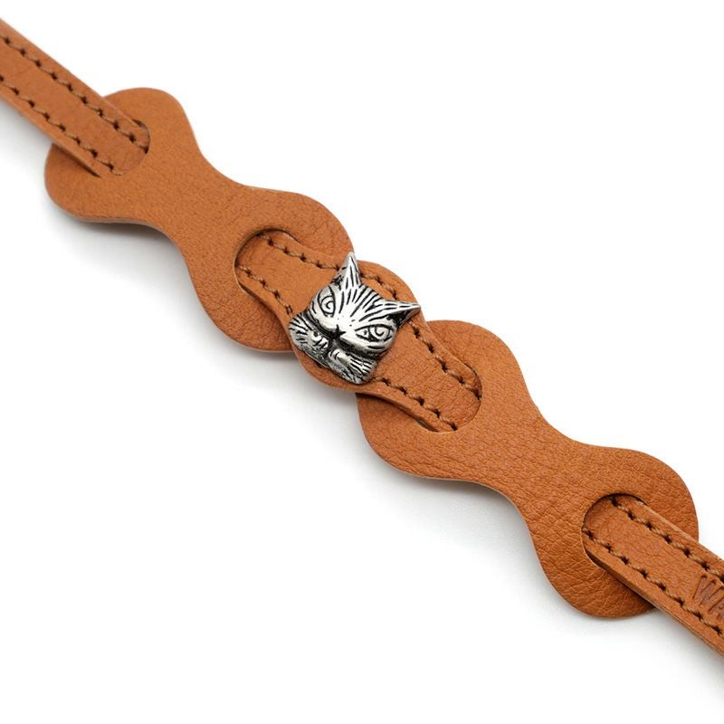 革で作った猫首輪。柔らかめの革と細めの幅で、猫ちゃんに負担を掛けないようデザインしています。