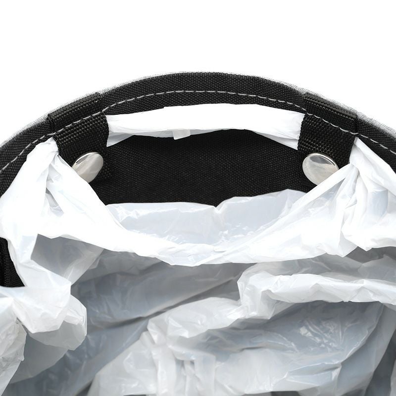 車内の小物をすっきり収納できるマルチポケット。内側のホックにはレジ袋の持ち手を取り付けることができるので、ごみ入れとしても使えます。内側の生地は水や汚れに強い素材を使用しています。