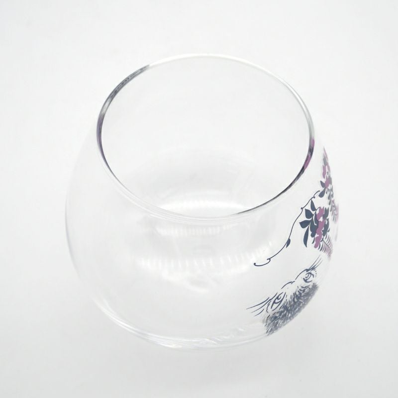 藤とダヤンがゆらゆらして爽やかな気持ちになれるグラス。起き上りこぼしのような底面がポイント。冷茶やジュースは勿論、ビールやワインにも合いますよ。※耐熱ガラスではありません。