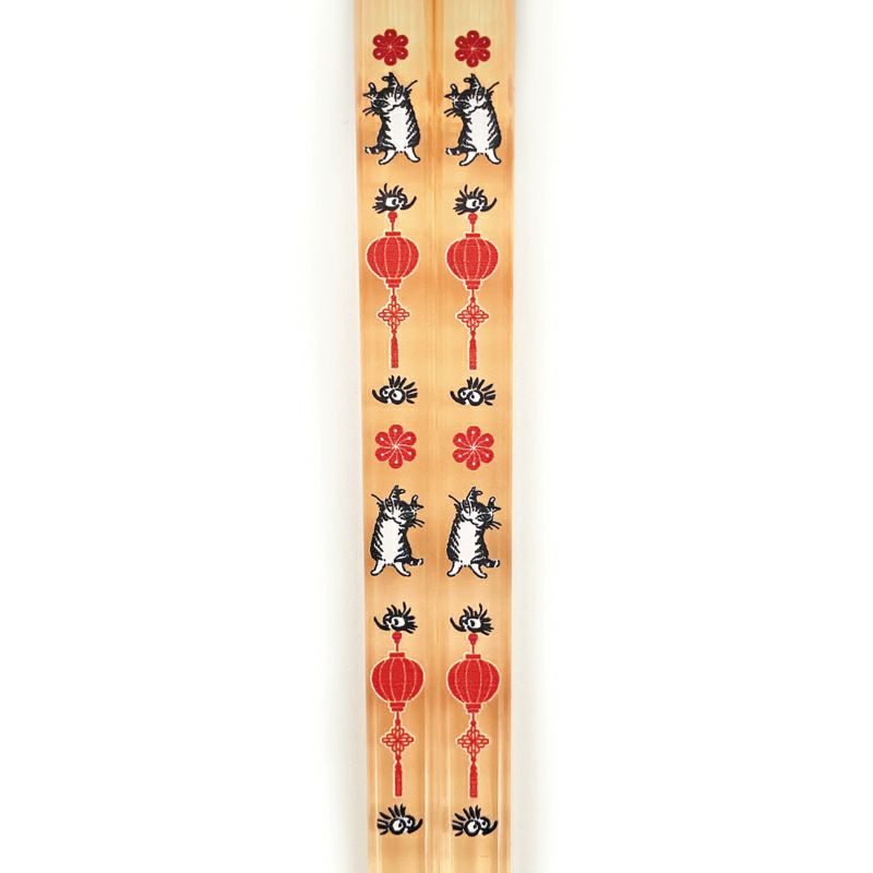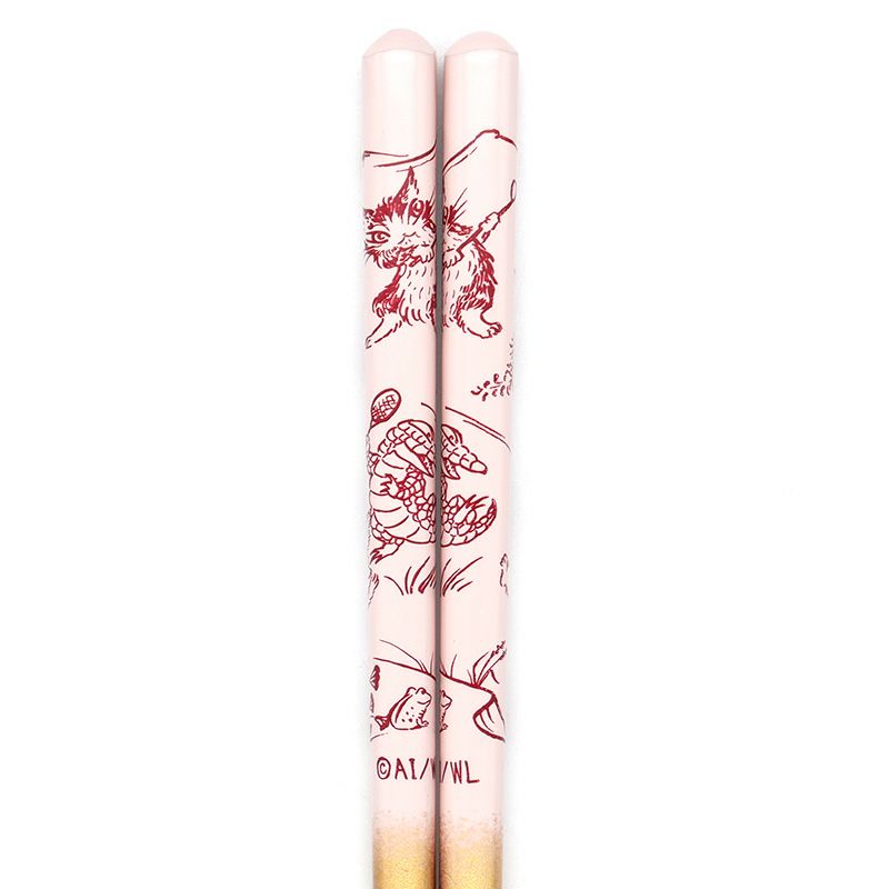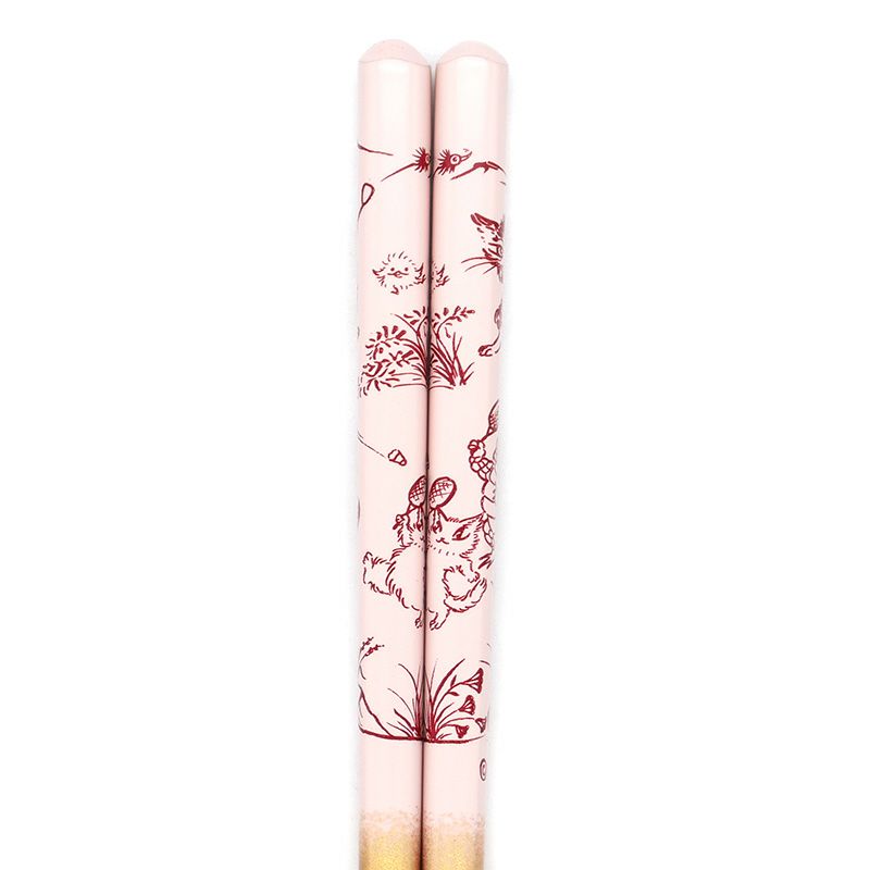猫獣戯画箸 桃×金