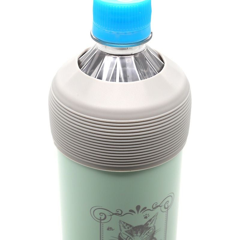 ペットボトルをそのまま入れて、フタをキュッとかぶせるだけの簡単保冷ボトルホルダーです。ステンレスの真空構造で、飲み物の冷たさを長持ちさせます。シリコン製のフタはボトルを抑え込むようにしっかり固定することで滑り止めとなり、キャップ開閉時にボトルが回るのを防ぎます。500~600mlのペットボトルを入れられます。※形状により入らない場合もあります。