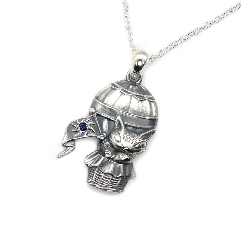 ダヤン誕生40周年の気球アイコンをシルバーアクセサリーにしました。ダヤンが振る旗の中に天然石のサファイアを埋め込んだネックレスです。
