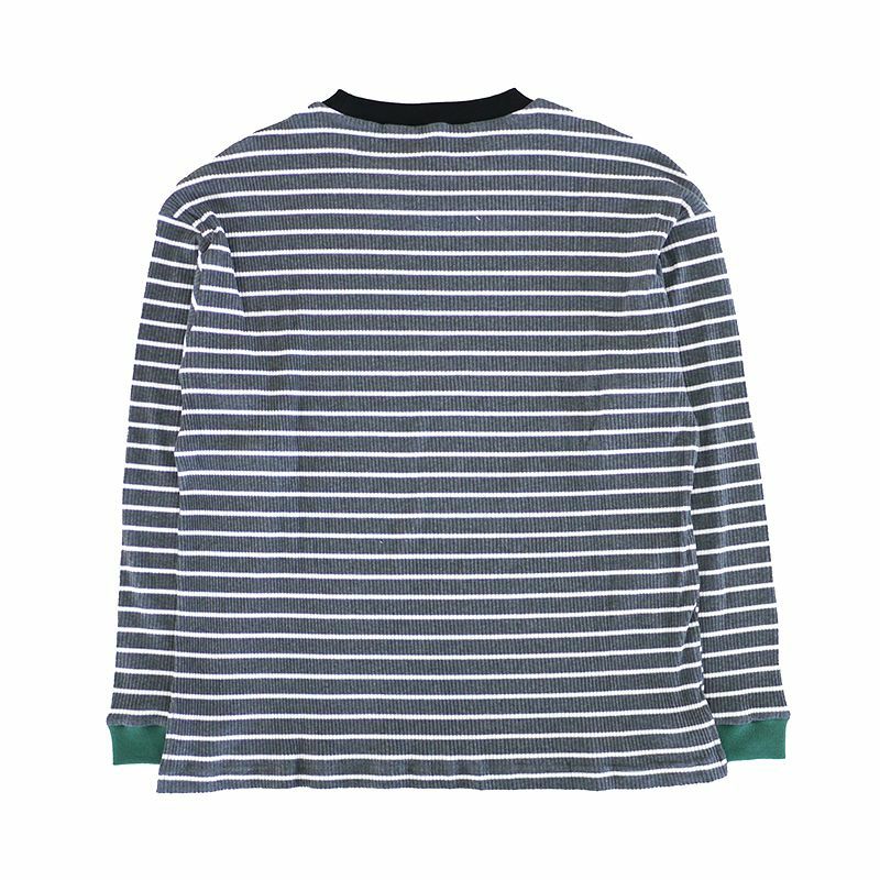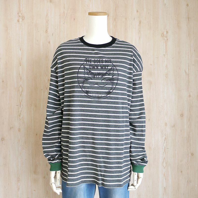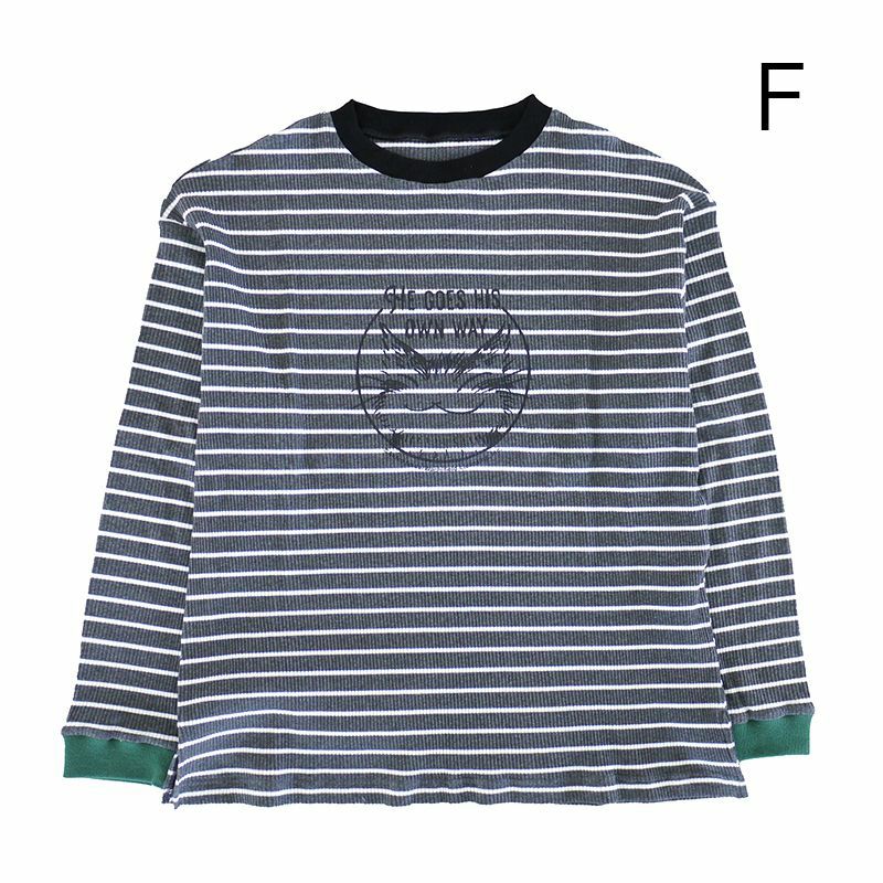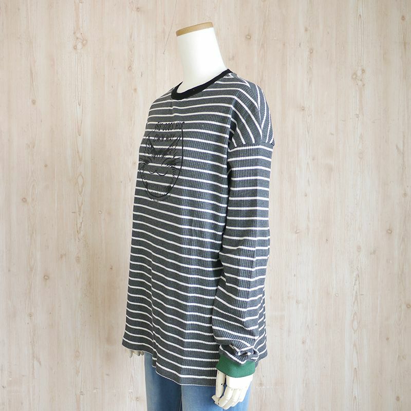 ゆったりとしたオーバーサイズシルエットで普段着に活躍する長袖Tシャツ。伸びのあるボーダー生地と配色のリブがおしゃれな1枚です。サイドスリット有り。