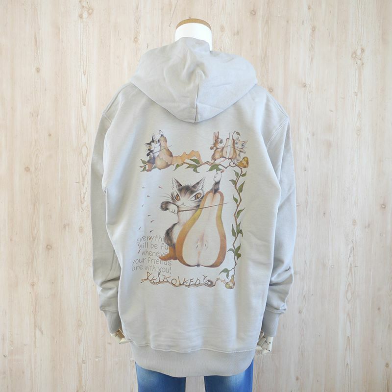 肌触りがとても優しいオーガニックコットン( OG )のプルオーバーパーカです。背中のバックプリントは生地に馴染んだ色味がナチュラルで綺麗。フロントにはエコネコワンポイントがさりげなくプリントされています。