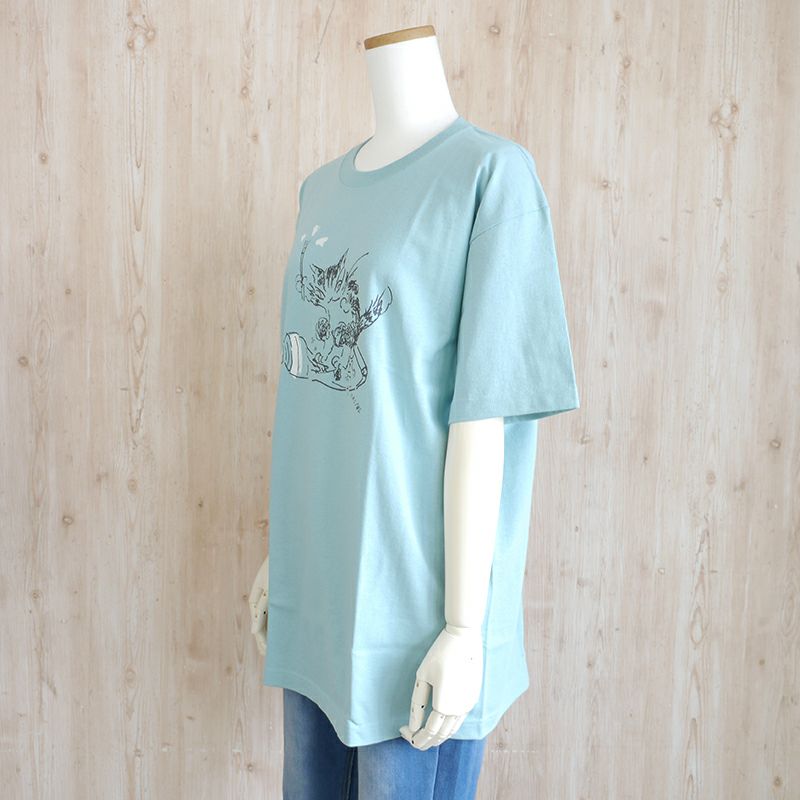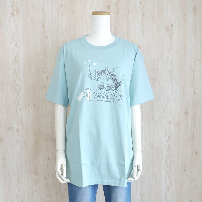 みゃーごTの第3弾。ふみふみ柄が、かわいいライトプライスTシャツ。ミントカラーで爽やかな印象です。