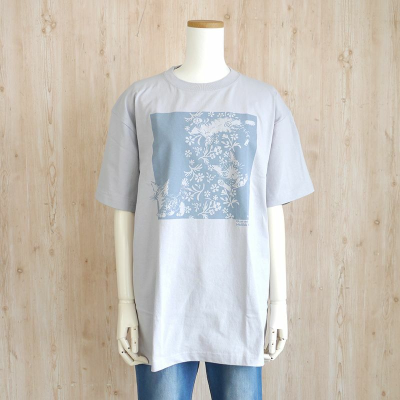 みゃーごTの第3弾。花とベビーダヤン柄が、かわいいライトプライスTシャツ。ライトグレーで落ち着いた印象です。