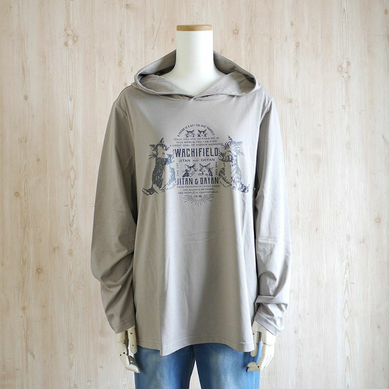 さらっとしたカットソー生地のフード付き長袖Tシャツ。オーバーTなどゆとりがあるトップスのインナーとして重ね着にも重宝します。