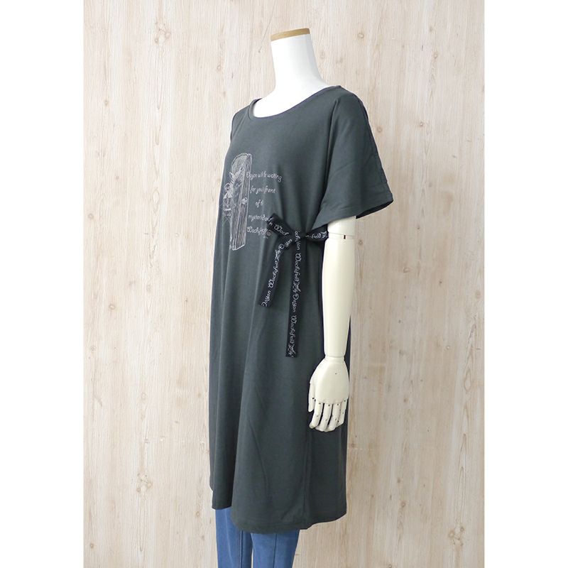 UVケア素材で吸湿速乾の夏の柔らかロングチュニック。広いアームはステッチが入っていて脇も見えにくくなっているのがうれしいポイント。サイドの平紐を結んだり垂らしたり、アレンジが楽しめます。