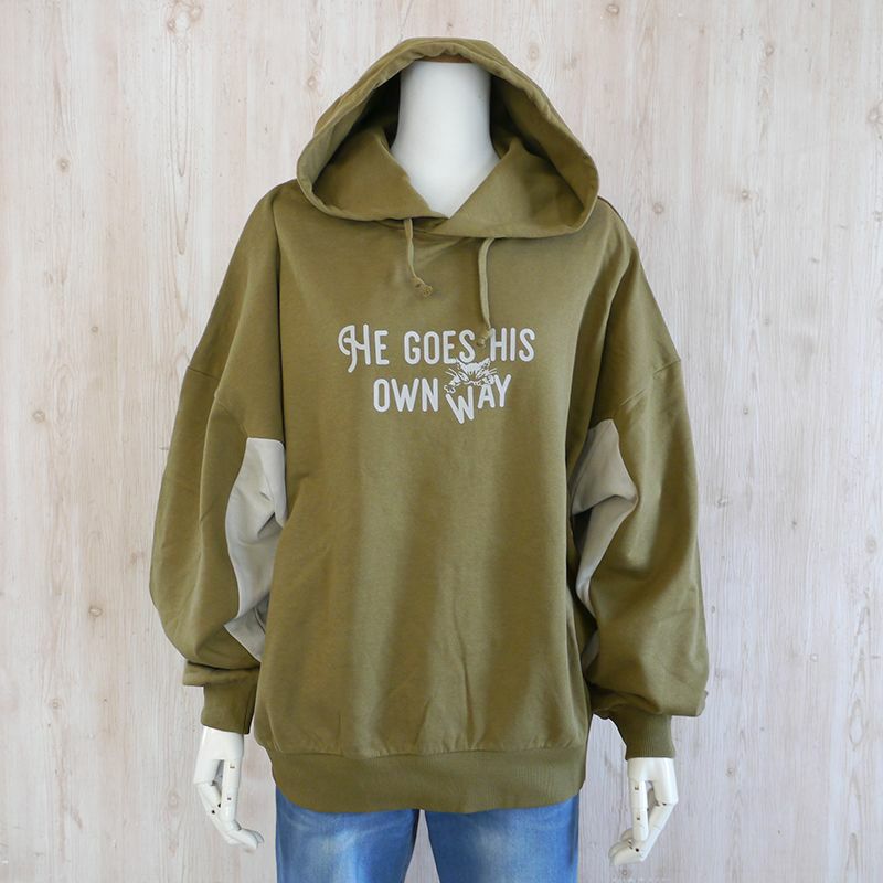 人気のスクエアシルエットのワイドフーディ。脇下から袖下にかけてのまあるい配色がポイント。1枚で着たい季節にちょうどいい秋色フーディ。ほんわかダヤンのデザインがとてもかわいいです。