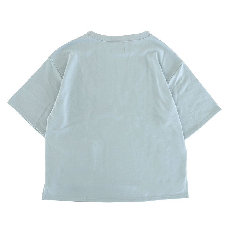 まるでポシェットを肩から掛けているかのような、遊び心のあるデザインが目を引くTシャツ。素材には、薄手で軽やかなスウェット生地を使用。BOX型のオーバーサイズシルエットで、身体のラインを拾いにくく、リラックス感のある着心地です。ポケット部分はスナップボタン仕様で、カード類などの収納が可能。シンプルながら存在感があり、一枚でスタイルが完成します。